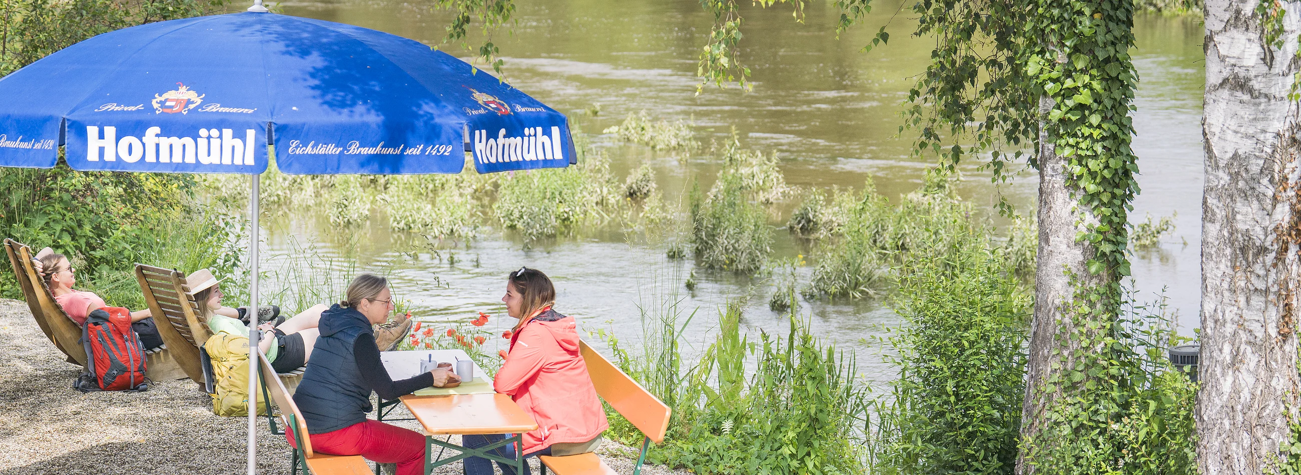 Genießen Sie den idyllischen Biergarten mit Strandfeeling und schönem Zugang zur Altmühl.