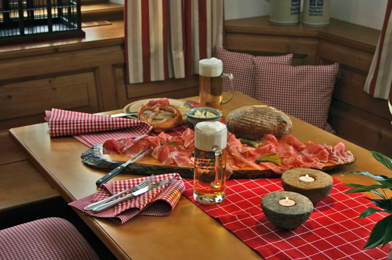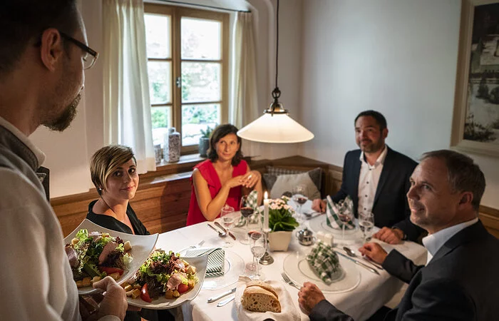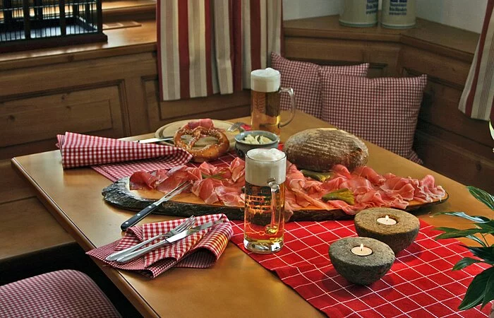 Regionales Genießer-Frühstücksbuffet, bayerische Küche mit hausgemachter Wurstvielfalt aus der eigenen Metzgerei, Lammspezialitäten, gemütliche Biergärten, Bar & Lounge, Bräustüberl, voll ausgestattete und klimatisierte Tagungsräume, Räumlichkeiten für Anlässe aller Art.