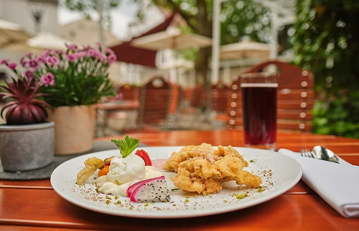 Regionale Schmankerl im herrlichen Biergarten.