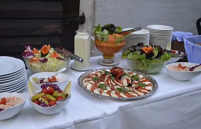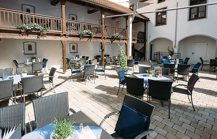Frisch und regional, gut bayerisch mit moderner Note: Unser Küchenteam verwöhnt Sie mit vielfältigen Delikatessen. Machen Sie es sich gemütlich: Historische Räume und Terrassenplätze im Innenhof erwarten Sie. Unsere Räume bieten Platz für 20 bis 300 Personen.