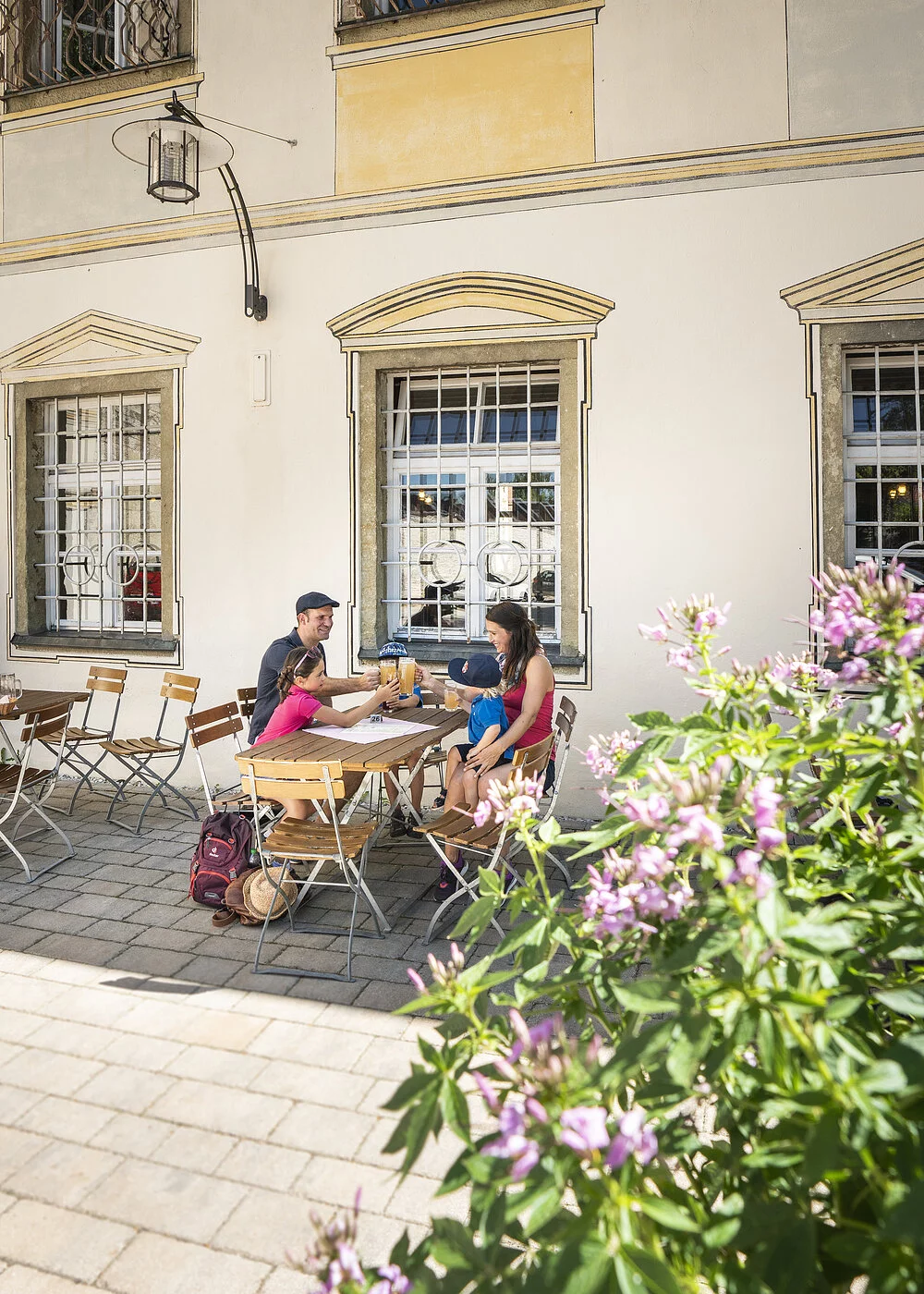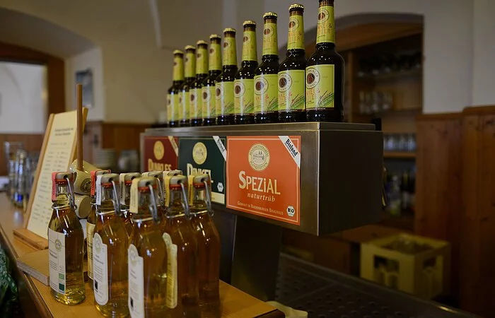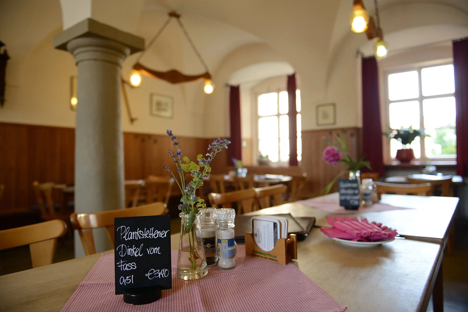 Neben einer reichhaltigen Getränkeauswahl bieten wir Ihnen in unserer gemütlichen Schenke mit Biergarten auch kulinarische Schmankerl: Wohlschmeckend, saisonal und in bester Bio-Qualität!