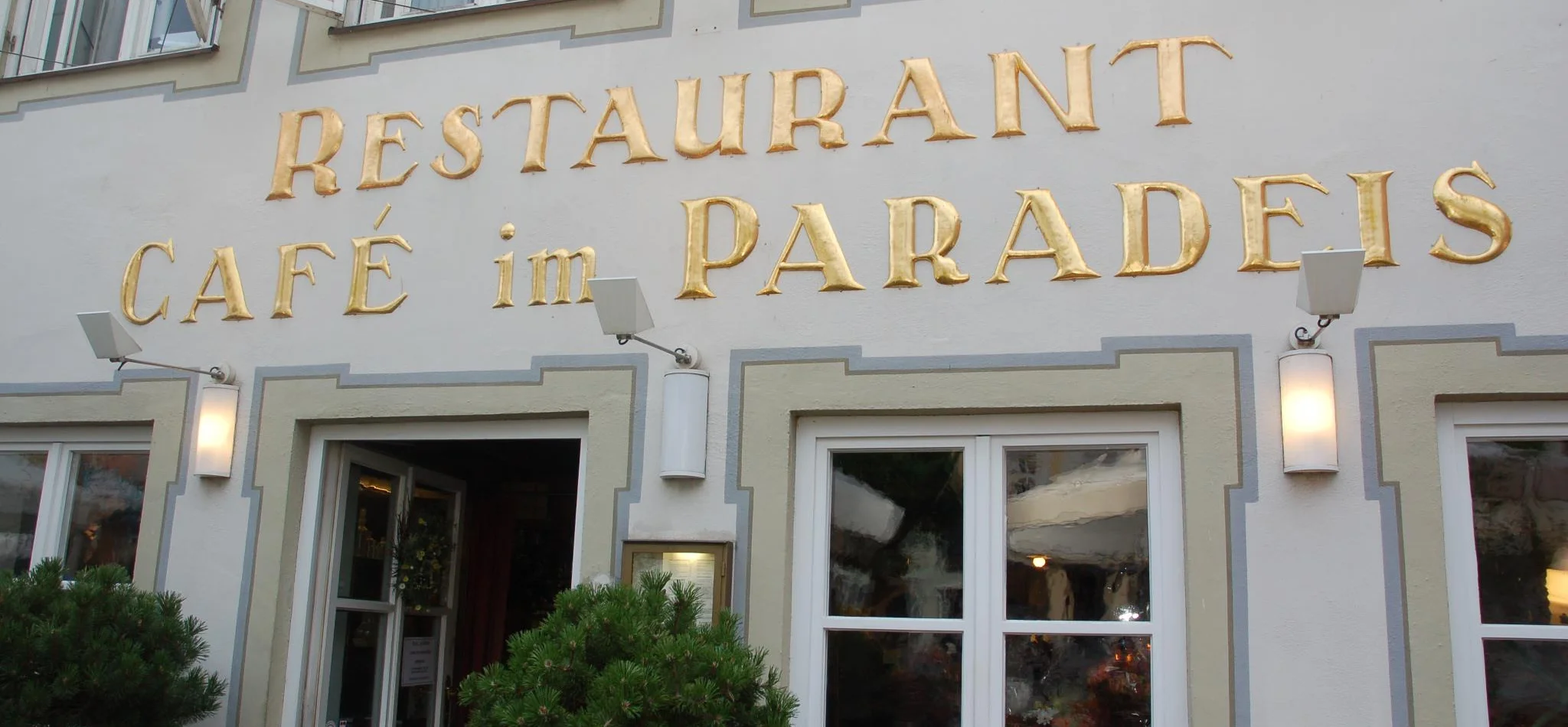Das Café im Paradeis ist das älteste und einzige Fachwerkhaus in der barocken Altstadt. Das Haus aus dem 13. Jahrhundert verfügt über einen Gastraum sowie zwei charmante Räumlichkeiten im Obergeschoss, welche exklusiv für Familienfeiern oder Gruppenanfragen gebucht werden können. Insgesamt stehen im Haus 80 Plätze zur Verfügung. Die großzügige Außenterrasse mit 120 Sitzplätzen liegt in unmittelbarer Nähe des Marktplatzes. Vor allem an Markttagen sind die Plätze sehr begehrt, denn von hier lässt sich das bunte Markttreiben mit allen Sinnen erleben. Gäste kommen in den Genuss von sowohl deftigen als auch süßen Gerichten, immer regional & saisonal.