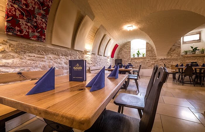 Genießen Sie herzhaft zubereitete Speisen im freundlichen und hellen historischen Gewölbekeller. In früheren Zeiten wurde dort süffiges Bier einer regionalen Brauerei gelagert, heutzutage verwöhnt Sie unsere Küche mit liebevoll zubereiteten und in Szene gesetzten, regionalen Köstlichkeiten. Lassen Sie die Symbiose aus Historie und moderner Küche auf sich wirken. Unser Motto: Tradition, regional und modern - überzeugen Sie sich selbst. Herzhafte Spezialitäten aus dem Altmühltal und Umgebung.