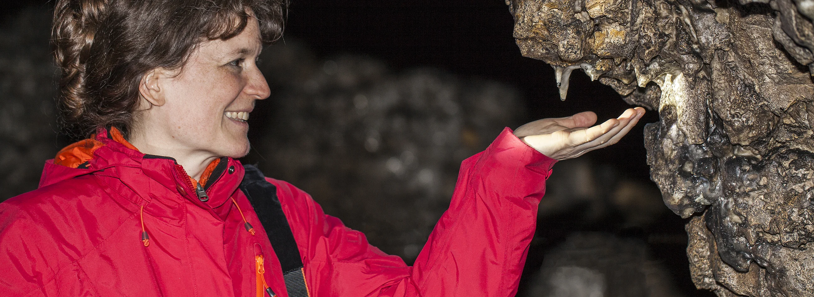 Veronika Gruber: „Für mich ist die Höhle ein richtiger Rückzugsort, in der eine besondere Stille herrscht. Denn ganz geräuschlos ist es nie in einer Tropfsteinhöhle. Schließlich sind wir hier in der Werkstatt der Natur und überall hört man das Kloing und Patsch der Wassertropfen.“