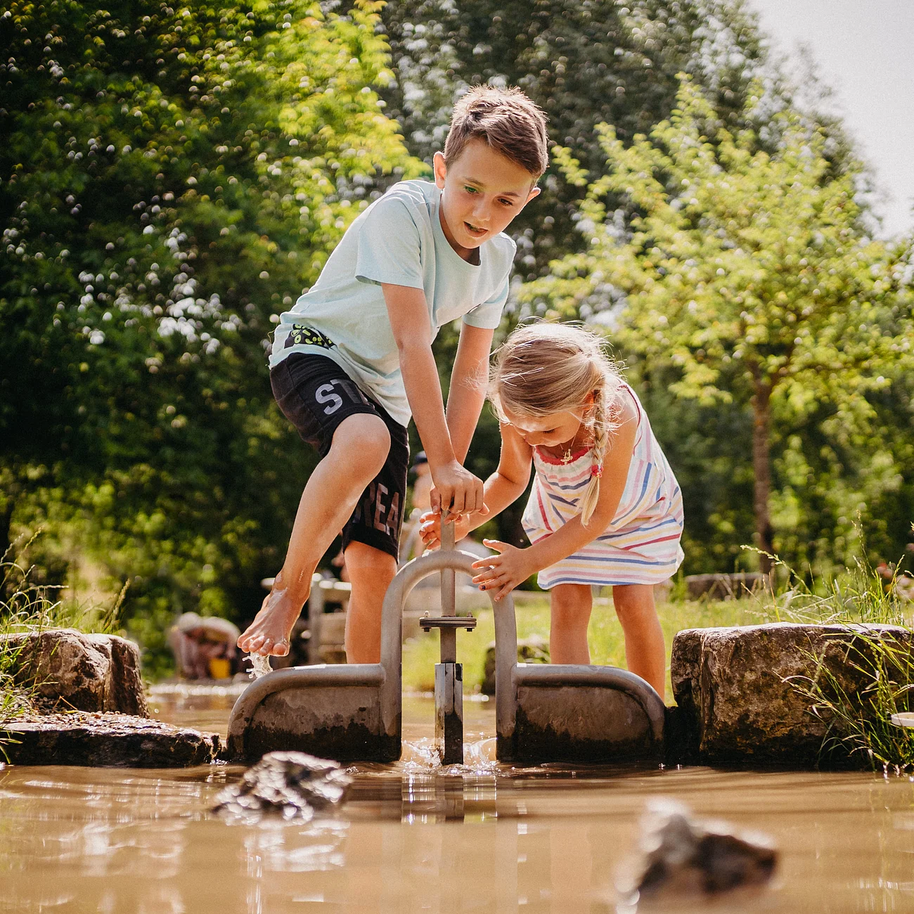 Der Top-Tipp für Familien: Ob in Berching, Beilngries, Kinding oder Monheim, planschen auf dem Wasserspielplatz macht schon die Kleinsten glücklich.