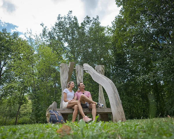 Parkplatz Nähe Kunstweg an Fels und Fluss