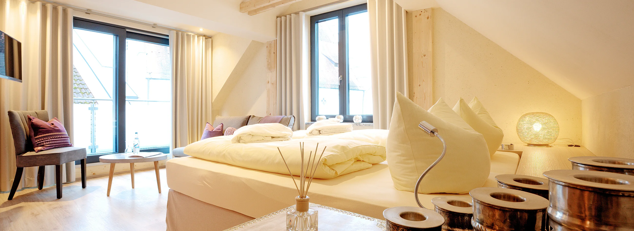 Ob ein gemütliches Wochenende zu zweit oder einfach den Alltag für zwei Tage entfliehen. Genießen Sie in einem der unterschiedlichsten Themenzimmer in der Schmiede7 ein romantisches Beisammensein mitten im wunderschönen Altmühltal!