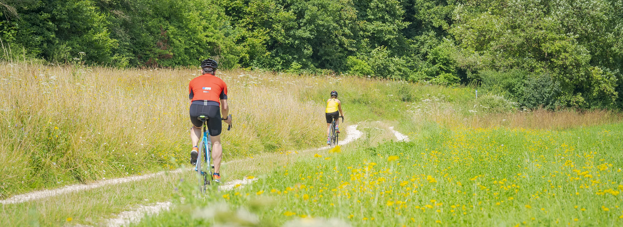Die lebendige Altstadt von Riedenburg ist Ausgangspunkt der Tour. Auf der ruhigen Seite des Main-Donau-Kanals läßt es sich zehn Kilometer lang genüßlich einrollen. Rund um den Speckelsberg machen Kanal und Altmühl eine 180-Grad-Schleife durch das enge Tal. Später ragt das Schloss Eggersberg hoch über dem Fluss empor. In Altmühlmünster biegt die Strecke dann ins Tal des gleichnamigen Baches. Stetig hinauf über Waldwege geht es durch verwunschene Wälder und vorbei an malerischen Lichtungen. Über die Dörfer Thann, Neuses und Pondorf führt die Route nach Zandt. Kurz hinter dem Dorf beginnt der pure Gravelspaß: Fast zehn Kilometer lang geht es ein menschenleeres Tal hinab. Die saftigen Wiesen im Talgrund duften herrlich nach Sommer, Schmetterlinge kreisen über dem Grund und außer dem Singen von Vögeln sind keine Geräusche zu vernehmen – ein wahrhaft erhabenes Naturerlebnis. Nach einem kleinen Anstieg ist dann kurz vor Sandersdorf die Schambachtalbahn erreicht. Auf dieser gut ausgebauten ehemaligen Bahntrasse fernab vom Autoverkehr folgt die Route 15 Kilometer lang dem Schambach hinab nach Riedenburg. Dabei werden das Schloss Sandersdorf, die Ruine der Burg Altmannstein und das Schloss Hexenagger passiert. Damit macht die Route „Burgen und Täler“ ihrem Namen alle Ehre. Vor Riedenburg liegen besondere Highlights: Erst taucht die malerische Wallfahrtskirche Mariä Heimsuchung im Talgrund auf, dann folgt mit dem steilen Bergrücken des Lintlberges eine der schönsten Wachholderheiden des Naturparks, während im Hintergrund das Schloss Rosenburg über den Ausgang des Schambachtals in das Altmühltal wacht. Zurück in Riedenburg kann man in den Wirtshäusern und Biergärten der Stadt das Bier von gleich zwei lokalen Brauereien genießen.