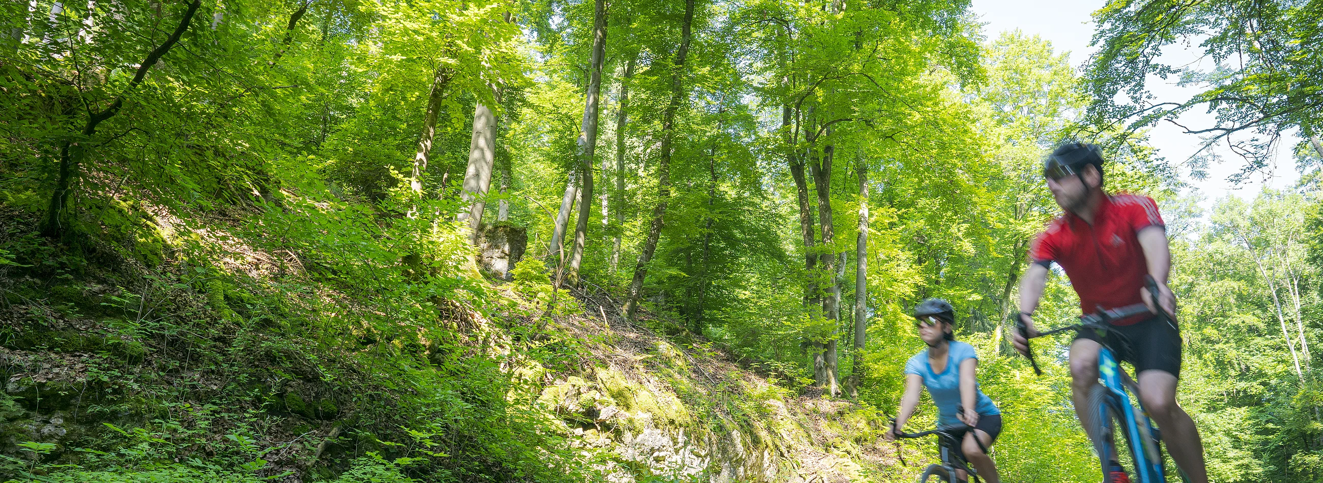 Startpunkt der Tour ist die Kelheimer Altstadt. Von dort aus könnt ihr euch erstmal gemütlich am Main-Donau-Kanal einrollen, bevor es nach etwa vier Kilometern bergauf geht. Bei 3,5 Prozent Steigung werden satte 170 Höhenmeter überwunden – immer durch den kühlen und ruhigen Ihrlersteiner Wald, auf graveltypischen Waldwegen und gänzlich ohne Autoverkehr ist dieser Anstieg ein kleiner Graveltraum. Und genauso geht es auch weiter: mehr als zehn Kilometer auf Wirtschaftswegen durch die Wälder der Jurahochfläche. Unterbrochen wird die Fahrt lediglich von einem kleinen Trailabenteuer und der Querung einer Straße. Das Dorf Aichkirch wird nur am Rande gestreift, bevor es wieder in südliche Richtung in die Wälder hinein geht. Der idyllische Weiler Ried ist eine kleine Rodungsinsel, so langsam kommt die Zivilisation aber wieder näher. Und zwar mit einem echten Highlight! Denn nach einer schönen Anfahrt auf einer asphaltierten Straße hinab ins Altmühltal springt einem die majestätische Burg Prunn ins Auge, das Postkartenmotiv des Naturpark Altmühltals schlechthin. Entlang des Main-Donau-Kanals geht es nach Riedenburg mit seinen drei Burgen und einer lebendigen Altstadt.