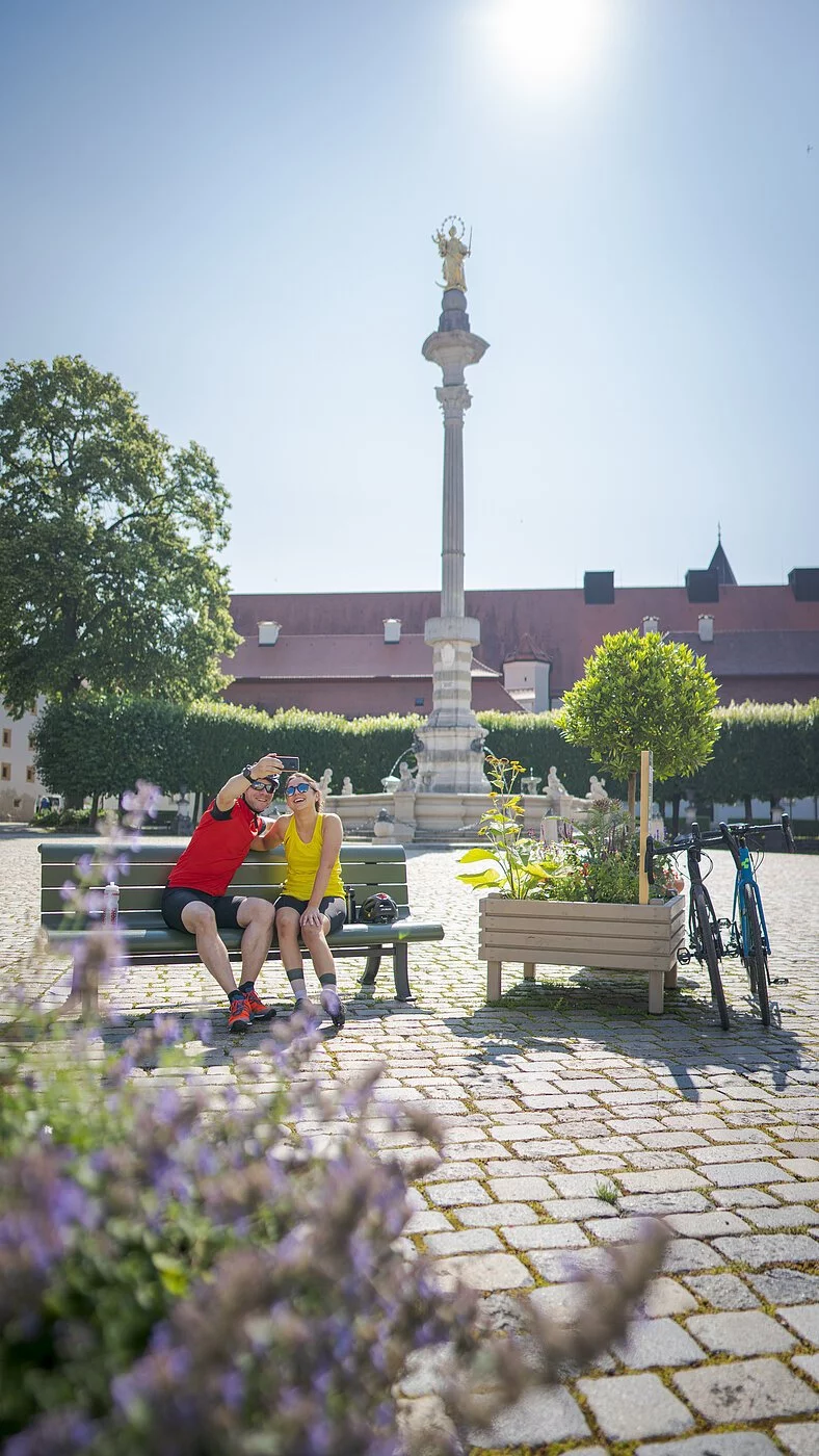 Vom Bahnhof Eichstätt Stadt führt die Route gemächlich zum Einrollen entlang der Altmühl. Hoch oben thront die Willibaldsburg, die zugleich repräsentative und wehrhafte Renaissancefestung der Eichstätter Bischöfe. Vorbei am imposanten Kloster Rebdorf folgt der einzige echte Anstieg der Tour auf die Jura-Hochfläche. Nach einer 200 Meter langen Schiebepassage durch eine Pferdekoppel öffnet sich danach der grandiose Blick auf die Altmühlschleife bei Obereichstätt. Wenige Kilometer weiter – nach der Ortsdurchfahrt von Schernfeld – folgt dann ein fast 40 Kilometer langer Graveltraum! Auf geschotterten Pisten führt die Strecke abseits von jedem Autoverkehr in leichtem Auf- und Ab durch den menschenleeren Schernfelder und Raitenbucher Forst. Neben dem sonoren Surren der Kette hört man hier nur das Zwitschern von Vögeln. Besser geht Entschleunigung in der freien Natur nicht! Nach einer kurzen Abfahrt öffnet sich das romantische und naturbelassene Laubenthal mit seinen saftigen Wiesen. Sanft windet sich der Weg das Tal hinauf bis man auf eine alte Römerstraße abbiegt, die schnurgerade durch den Wald führt. Beim kleinen Weiler St. Egidi folgt die Route eine kurze Strecke dem Limesradweg, bevor es wieder rein in den Wald geht. So schlängelt man sich über feinsten Schotter bis zum Waldgasthof Geländer. In der dortigen Tiererlebniswelt werden Flora und Fauna des Naturpark Altmühltal in faszinierenden Dioramen dargestellt. Beim Ort Sappenfeld endet die Fahrt durch den Wald dann. Wenige Kilometer weiter folgt die rasante Abfahrt hinab nach Eichstätt. Dort umrundet man dann noch die wunderschöne barocke Altstadt und nimmt als letzte radsportliche Herausforderung den Pavé-Sektor rund um den Residenzplatz bevor die Tour bei wohlverdientem Kaffee und Kuchen oder auch einem Bier im historischen Zentrum von Eichstätt endet.