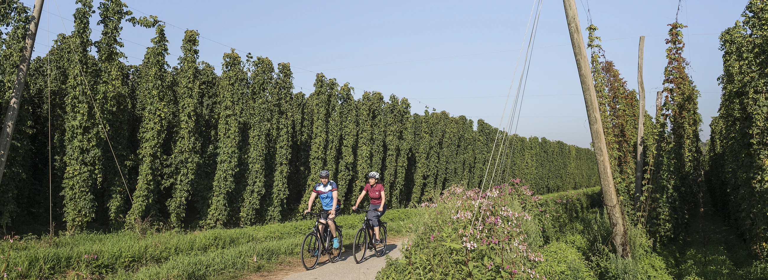 Herrliche E-Bike-Tagestour durch das Abenstal und das Hopfenland Hallertau, größtes zusammenhängendes Hopfenanbaugebiet der Welt