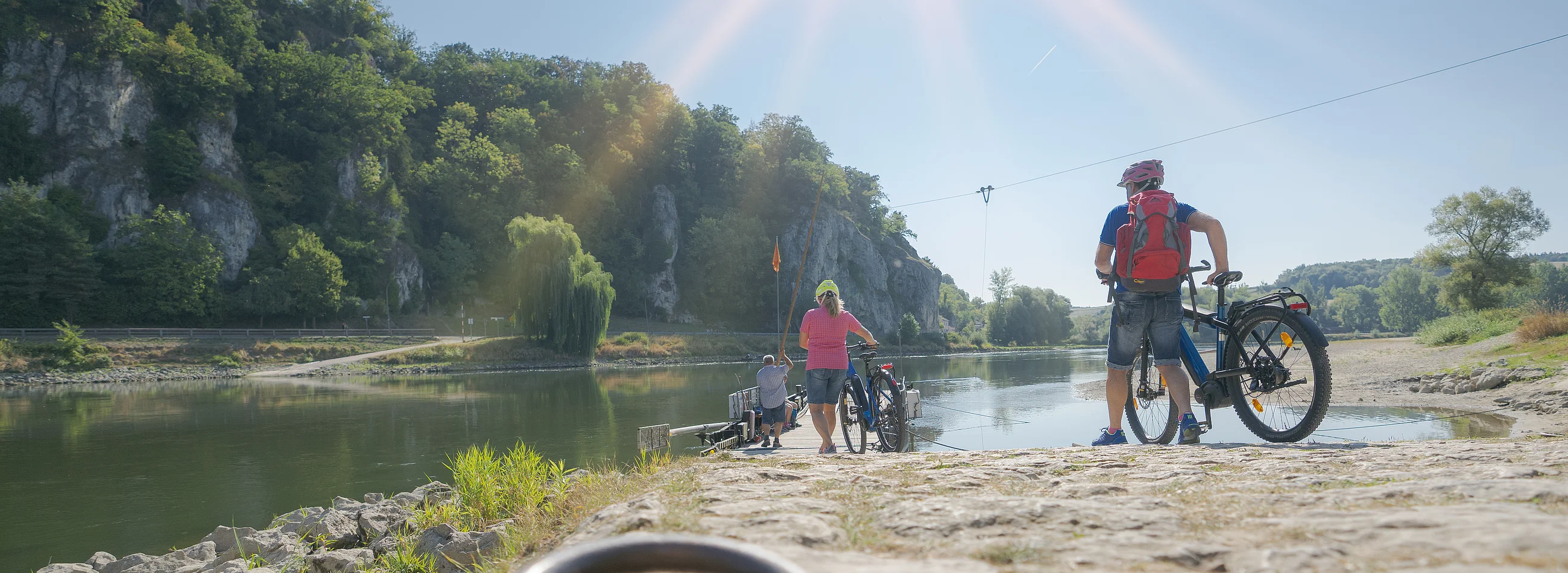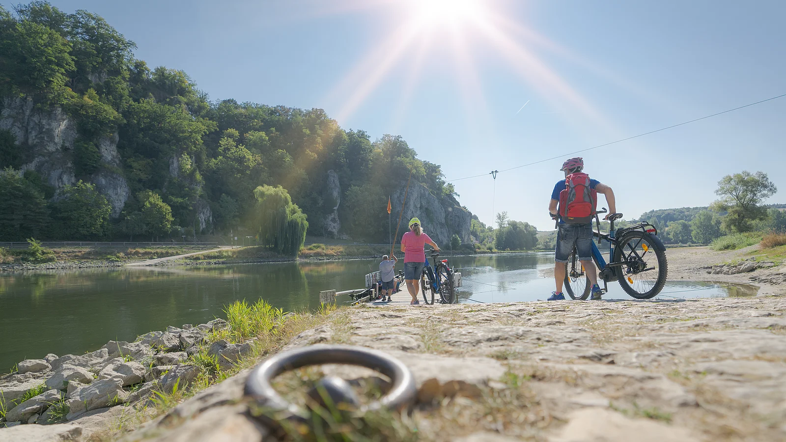 Ihre Tour starten Sie in der Wittelsbacher-Stadt Kelheim, die Sie mit der imposanten Befreiungshalle auf dem Michelsberg willkommen heißt. Ihr Weg führt Sie zunächst flussaufwärts entlang des Main-Donau-Kanals ins untere Altmühltal zu den idyllischen Örtchen Essing mit der Burgruine Randeck und Prunn mit der gleichnamigen Burg. Wenn Sie Ihr E-Bike bereits hier einem Bergtest unterziehen möchten, lohnt sich ein Abstecher zu den Burgen, die hoch über dem Altmühltal thronen. Ansonsten lohnt sich auch ein Ausflug zur Tropfsteinhöhle Schulerloch, deren faszinierende unterirdische Welt Kinder und Erwachsene staunen lässt.
