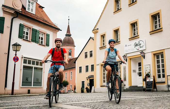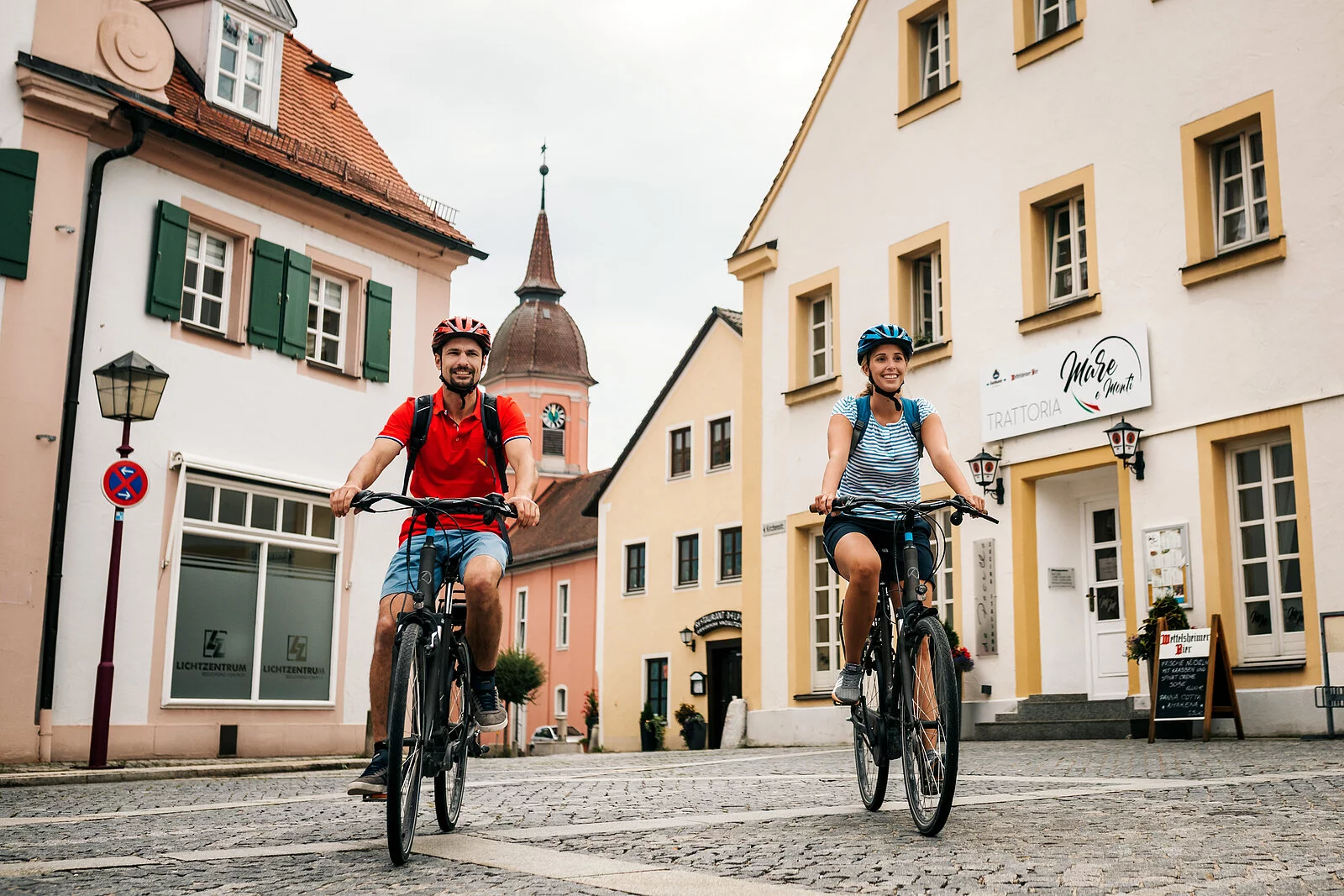 Bei dieser Tagestour geht es mit der Bahn nach Treuchtlingen. Dem Altmühltal-Radweg folgend liegen unter anderem Burg Pappenheim, das Museum Solnhofen mit seinen Archaeopteryx-Originalen, die Felsformation „Zwölf Apostel“ und der Burgsteinfelsen bei Dollnstein auf der Strecke. Den Abschluss bilden die prächtigen Barockbauten der Stadt Eichstätt. Von dort gelangt man mit der Bahn zurück.