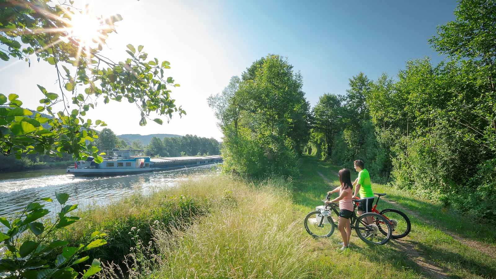 Am Ufer des Main-Donau-Kanals geht es anschließend weiter über die Drei-Burgen-Stadt Riedenburg und Essing mit seinem beeindruckenden Felsensemble. In dessen Nähe liegt die faszinierende Tropfsteinhöhle Schulerloch, deren unterirdische Welt mit dem einzigartigen Becherstalagmit besichtigt werden kann. Weiter geht es nach Kelheim, wo ein weiteres erdgeschichtliches Highlight wartet: der Donaudurchbruch „Weltenburger Enge“ mit seinen bis zu 70 Meter hoch aufragenden Felswänden. Ein steiler Anstieg ist auf diesem Abschnitt zu überwinden. Alternativ kann man diesen Abschnitt auf einem Linienschiff zurücklegen und vor der Weiterfahrt am Kloster Weltenburg Station machen. Weiter geht es durch die Sandharlander Heide: In diesem Naturschutzgebiet treffen die beiden Naturräume Fränkischer Jura und Tertiäres Hügelland zusammen.