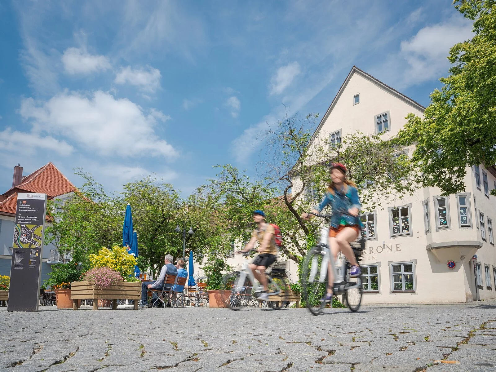 Nach Dollnstein wird das Tal sichtbar breiter. Grund dafür ist die mächtige Ur-Donau, die das Tal geschaffen hat, bevor die kleine Altmühl es einnahm. Bereits kurz hinter Dollnstein beeindruckt der Burgsteinfelsen, der zu Bayerns schönsten Geotopen zählt und ein beliebtes Kletterrevier ist. Felsen und Buchenwälder begleiten die weitere Strecke über Obereichstätt bis zur barocken Universitätsstadt Eichstätt. Bereits von weitem grüßen die auf einem Bergsporn über der Altmühl thronende Willibaldsburg und am Ortseingang das barocke Kloster Rebdorf. Eichstätt, mit seinen italienisch anmutenden Gassen, der Vielzahl an Kirchen und imposanten Gebäuden lohnt einen längeren Aufenthalt. Fossilienfans sollten das Jura-Museum auf der Burg nicht verpassen.