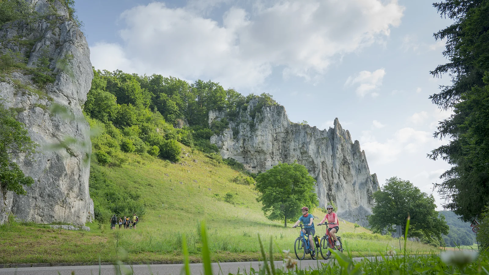 Diese E-Bike-Runde führt durch einige der schönsten Orte und Landschaften im Naturpark Altmühltal. Idyllische Wacholderheiden, grüne Flussauen und Felslandschaften liegen ebenso am Weg wie historische Sehenswürdigkeiten, etwa die Burg Kipfenberg, das Kloster Weltenburg oder das Neuburger Renaissanceschloss.