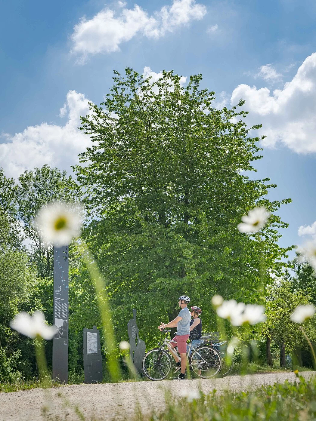 Vom Haus des Gastes geht es in nördlicher Richtung entlang des Fünf-Flüsse-Radweges. Beim Biergarten des Gasthofes Schattenhofer biegen wir rechts ab und folgen dem Radweg in Richtung Berching. Am Yachthafen vorbei führt der Weg am Westufer des Main-Donau-Kanals entlang. Es lohnt sich, zunächst einen Abstecher zum Informationszentrum „Erlebniswelt Wasserstraße“ in der Gößelthalmühle und danach zur Benediktinerabtei Plankstetten einzuplanen (jeweils Beschilderung folgen). Weiter fährt man entlang des Kanals bis zur Schleuse Berching, wo der Radweg die Kanalseite wechselt. Von der Uferpromenade gelangt man durch das Gredinger Tor in die historische Altstadt von Berching, wo mehrere Gasthöfe zur Rast einladen. Durch das Mittlere Tor verlässt man die Innenstadt und folgt bei der Kirche St. Lorenz der Bahnhofstraße durch das Neumarkter Tor, nach welchem wir rechts abbiegen und entlang der Stadtmauer auf den Ludwig-Donau-Main-Kanal treffen. Diesem folgen wir nun Richtung Süden. Bei der Ampelanlage wechselt der Weg auf die andere Seite der Bundesstraße.