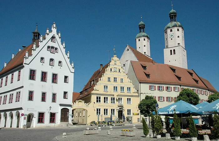 In Möhren folgen Sie weiter dem Radweg über Gundelsheim und Weilheim nach Otting. Dort treffen Sie an einem idyllisch liegenden Weiher auf das Schloss Otting, welches auf eine 400-jährige Historie zurückblicken kann. Anschließend erreichen Sie die Fuchsienstadt Wemding. Die Stadt ist bekannt für ihre Wallfahrtskirche „Maria Brünnlein“. Die Basilika im Stil des Rokoko wurde im 18. Jahrhundert errichtet und beheimatet ein Gnadenbild der Mutter Gottes. In Wemding lohnt ebenso ein Besuch der mittelalterlichen Altstadt, die im Sommer zusätzlich mit prächtig blühenden Fuchsien geschmückt ist.