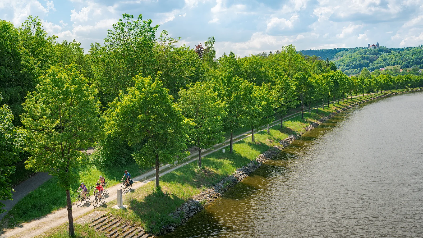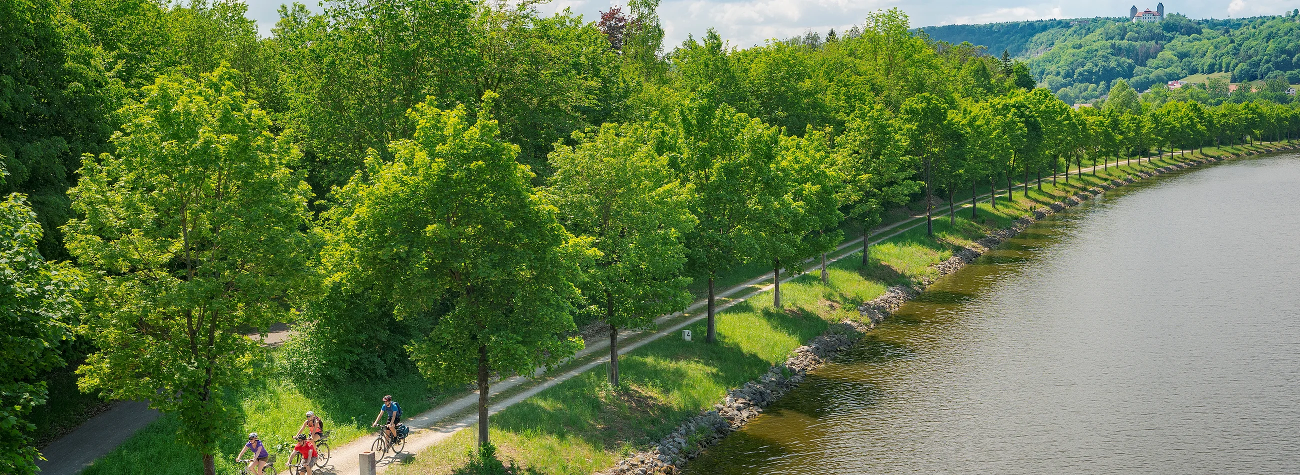 Los geht es in der ehemaligen Pfalzgrafenstadt Neumarkt i.d.OPf., wo die Residenz im Renaissance-Stil und das gotische Münster St. Johannes in noch weiter zurückliegende Epochen entführen. Am historischen Ludwig-Donau-Main-Kanal verläuft die Tour entspannt bis Berching, das mit seinen mittelalterlichen Gassen und der vollständig erhaltenen Stadtmauer bezaubert. Weiter dem Kanal folgend, der auf diesem Abschnitt teilweise nur als trockene Fahrrinne erhalten ist, gelangt man nach Beilngries. Kurz vor der Stadt lohnt sich ein Zwischenstopp an der Erlebniswelt Wasserstraße in der Gösselthalmühle, die mit interaktiven Stationen viel Wissenswertes über den modernen Main-Donau-Kanal vermittelt. In Beilngries treffen mittelalterliche Türme auf Barockbauten der Eichstätter Fürstbischöfe – wie das Schloss Hirschberg. Zahlreiche Einkehrmöglichkeiten verleihen der Stadt eine südliche Atmosphäre, die Lust auf eine Pause macht.