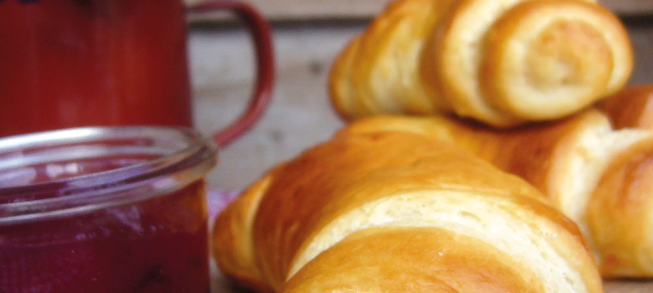 Kipferl auf ein Blech mit Backpapier legen und zugedeckt ca. 30 Min. gehen lassen. Eidotter mit Milch verquirlen und die Kipferl damit bestreichen. Bei 180 °C ca. 20 Min. backen. Beliebt zum Frühstück in Bonschabs Hofcafé!