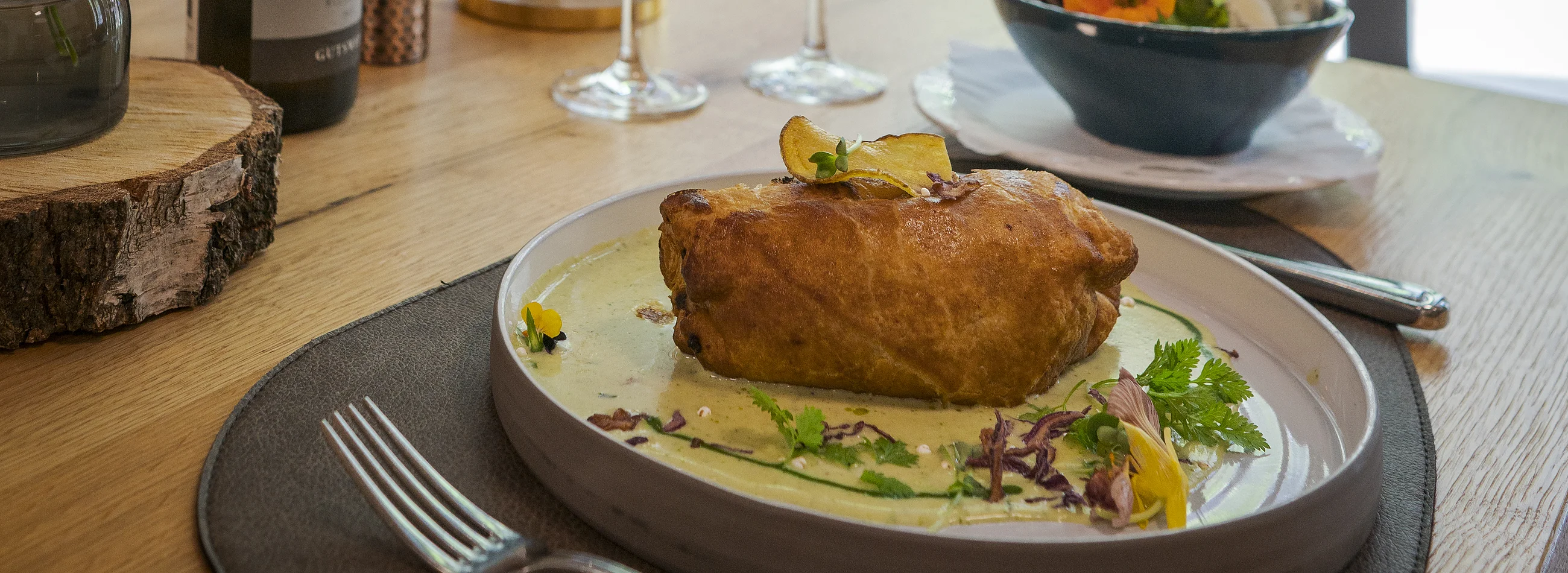 Ein herzhafter Lammstrudel, bei dem fein gewürztes Altmühltaler Lammhack in knusprigem Blätterteig zu einem aromatischen, raffiniert-rustikalen Genuss vereint wird.