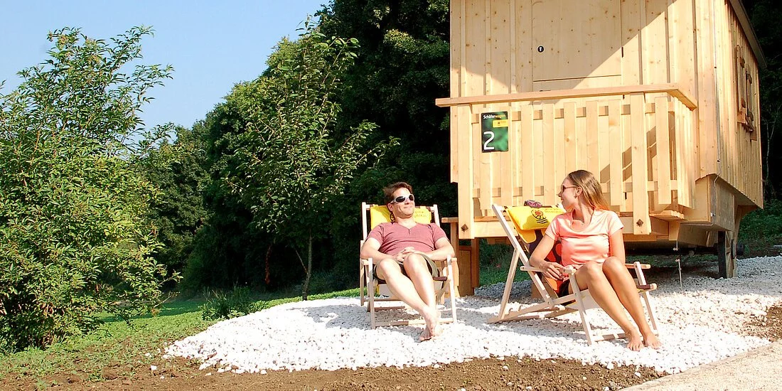 Übernachten wie ein Hirte im Naturpark Altmühltal – dazu laden die sechs gemütlichen Schäferwägen unseres Schäferwagendorfs ein.