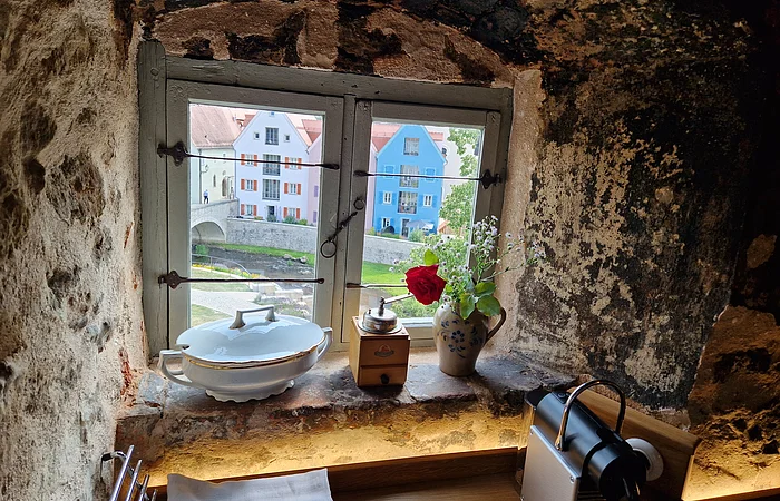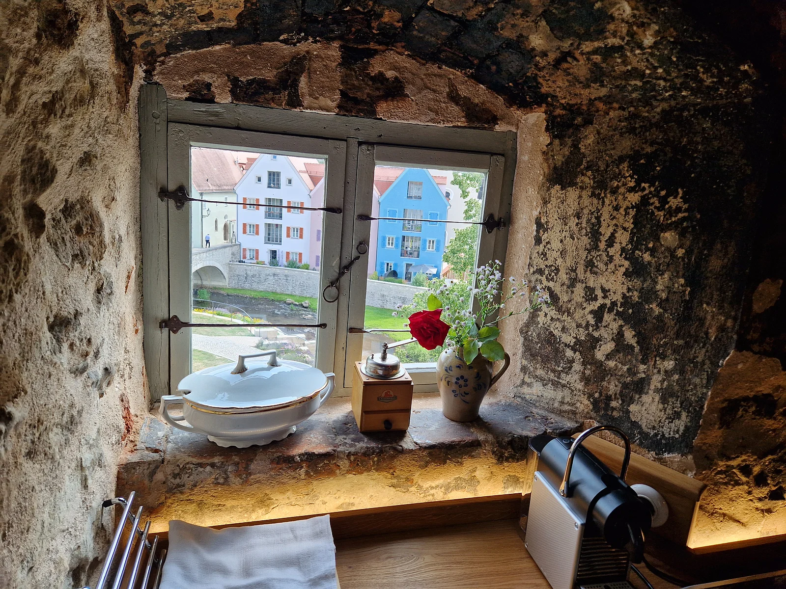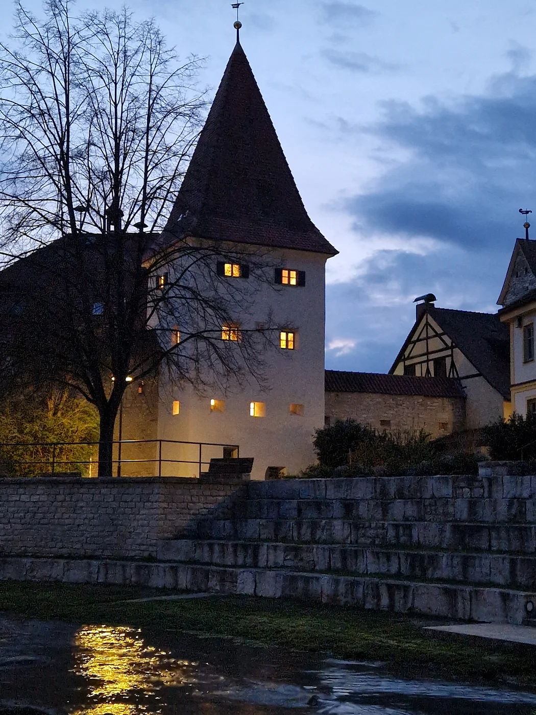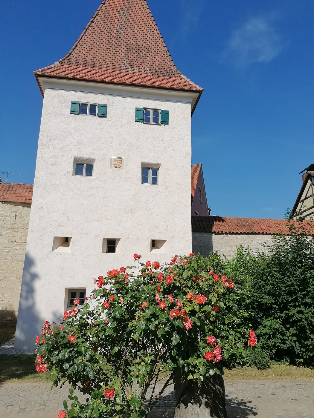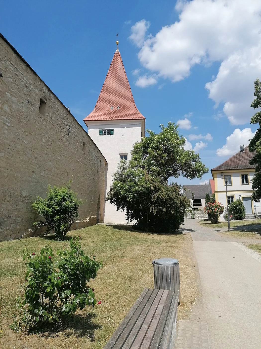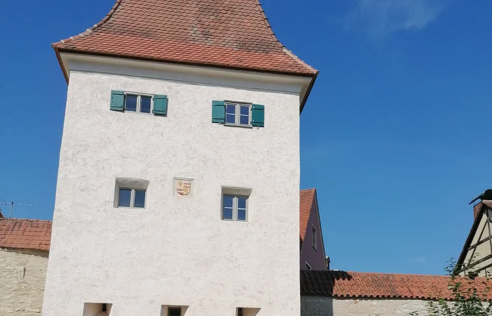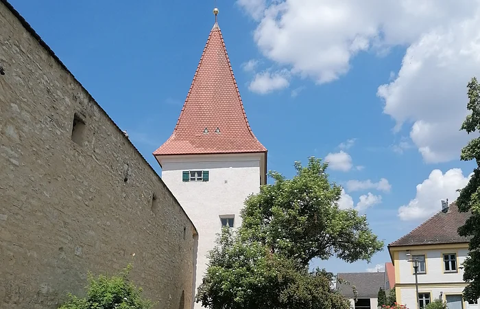 Der Vierkantbau trägt ein Spitzhelmdach, welches eine Ähnlichkeit mit dem spitzhelmigen Landsknechtshelm des Mittelalters aufweist. Das Wappen an der Außenfront verweist auf den eichstättischen Landesherrn, als einstigen Besitzer der Stadtbefestigung. Zudem erkennt man noch heute die mittelalterlichen Schießscharten, die den Verteidigern erlaubten, in den Stadtgraben eingedrungene Angreifer nach allen Seiten zu beschießen.