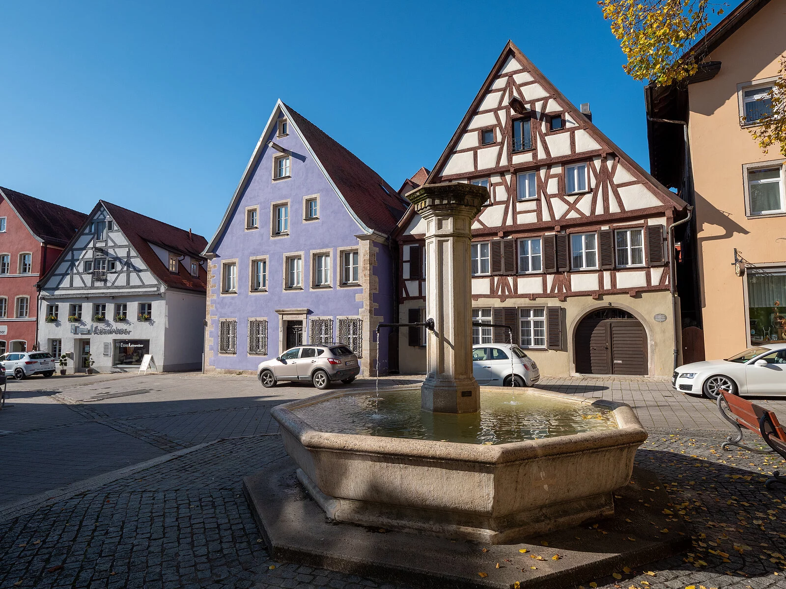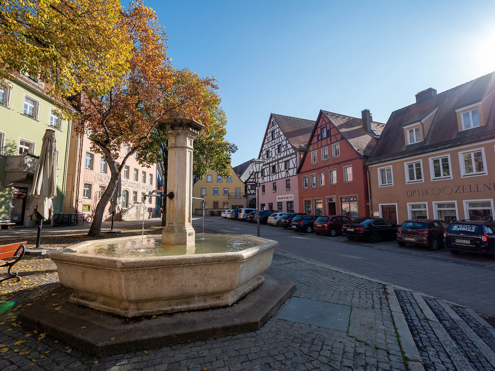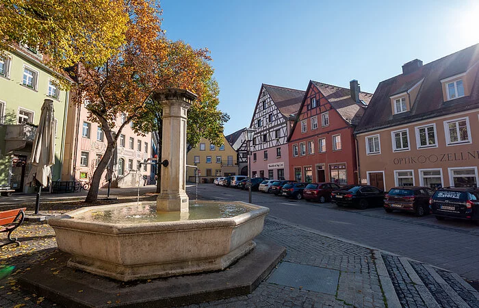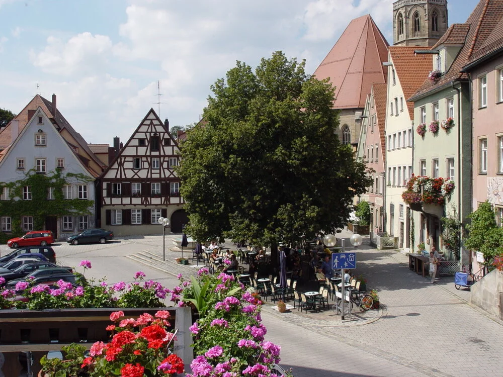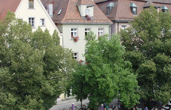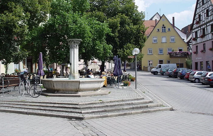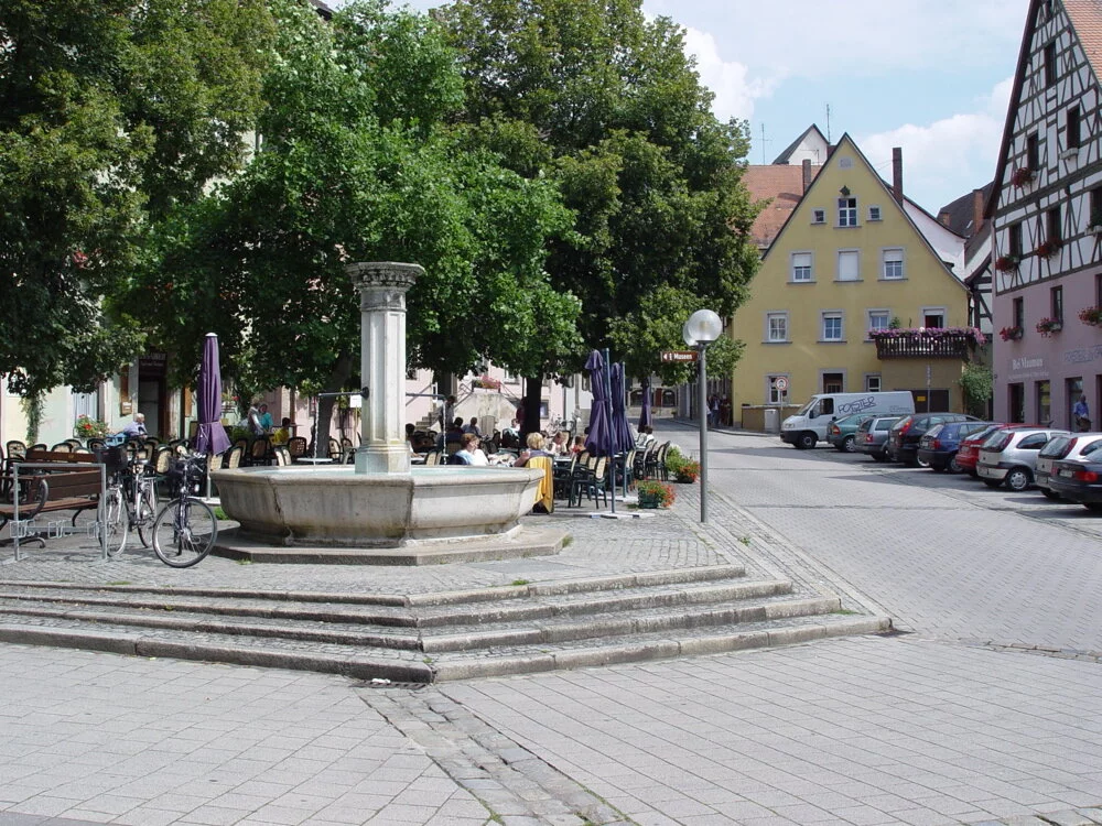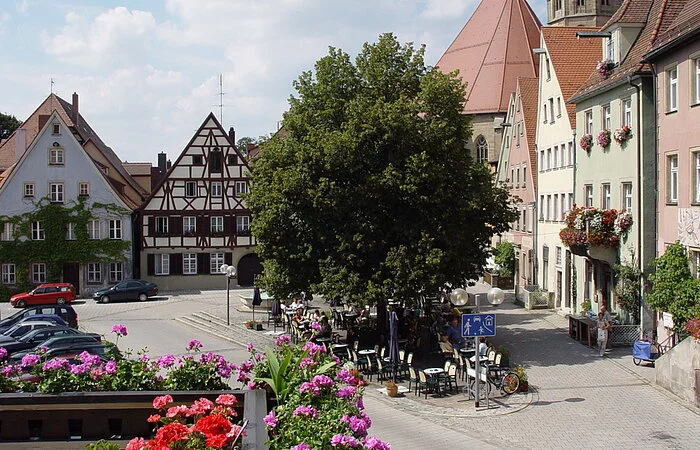 Im Herzen der Altstadt von Weißenburg laden hier "Am Hof" die gemütlichen Bänke am Brunnen und ein Café zum Verweilen ein. Im Sommer genießen Sie hier Ihren Kaffee und Kuchen unter schattigen Bäumen.