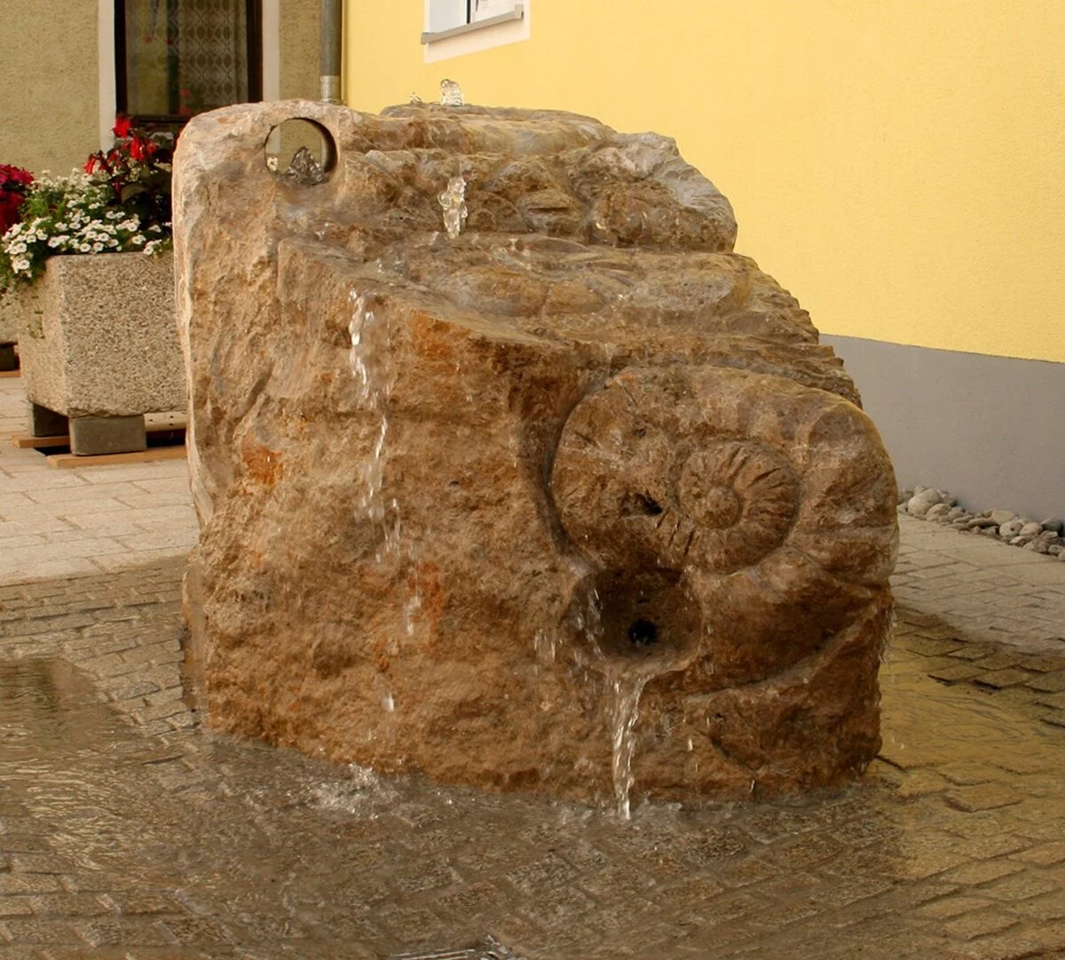 Der Ammonitenbrunnen steht in der 7-Täler-Stadt am sogenannten Marktplatz.