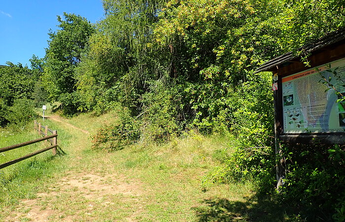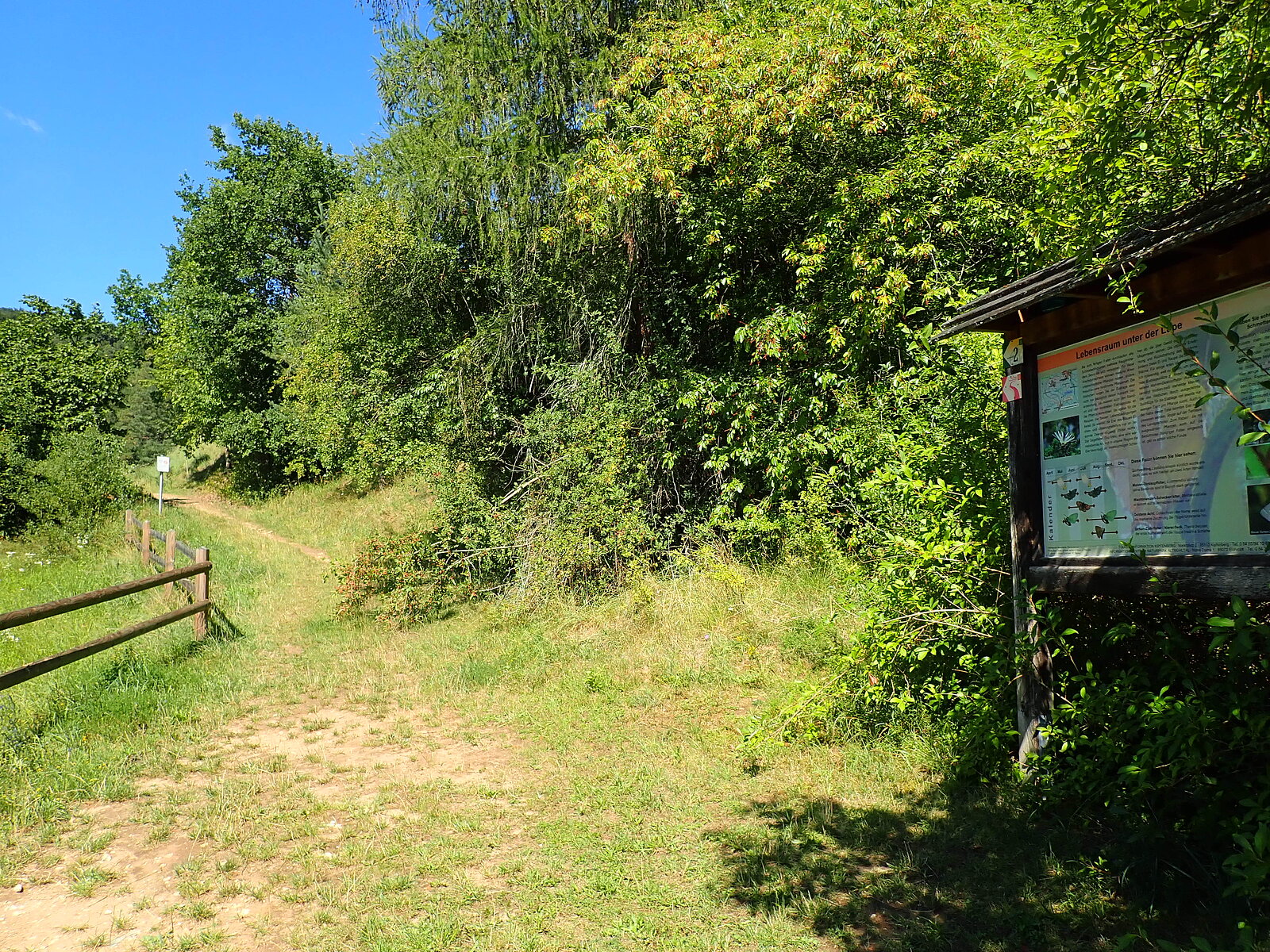 Am Hang lassen sich mehrere Pflanzengesellschaften unterscheiden: Am Hangfuß ist der Halbtrockenrasen mit Fettwiesenarten gemischt, da sich dort die Feuchtigkeit länger halten kann. Nach oben schließt sich der eigentliche Halbtrockenrasen an, in dem viele stachelige Gewächse wie die Silberdistel oder Pflanzen mit stark behaarten Blättern wie die bis zu 2 Meter hoch werdende Großblütige Königskerze zu finden sind, die von den Schafen verschmäht werden. Bemerkenswert ist hier auch das Vorkommen verschiedener Knabenkraut-Arten.