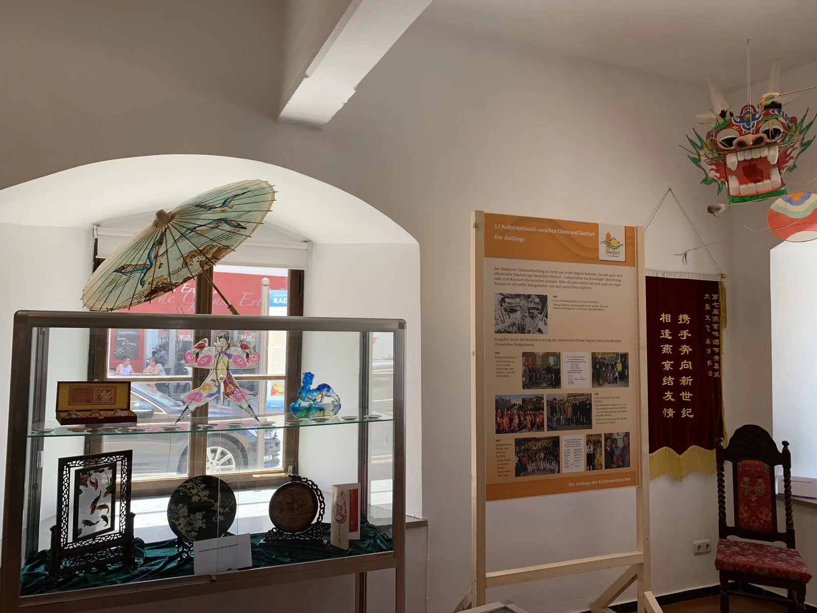Im Erdgeschoss des Rathauses Dietfurt befindet sich die Ausstellung "Bayrisch China". Sie dokumentiert den "Chinesenfasching" am Unsinnigen Donnerstag in der 7-Täler-Stadt und den Kulturaustausch zwischen Dietfurt und China.
