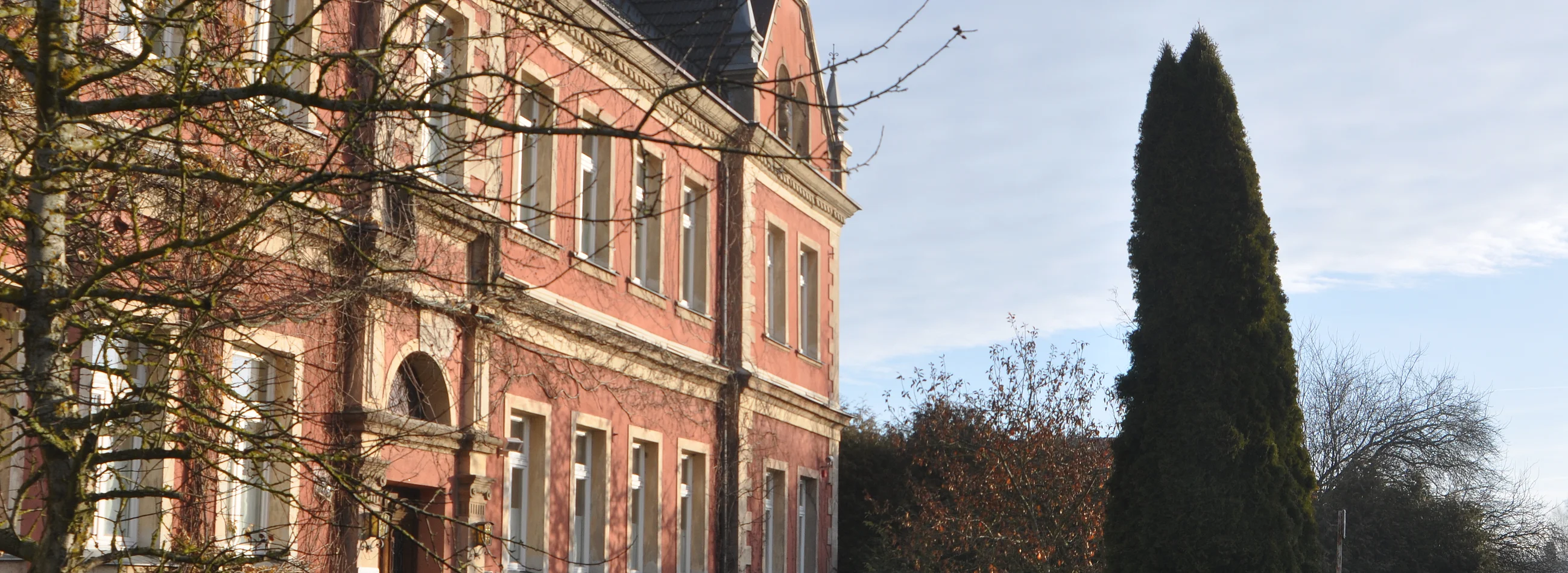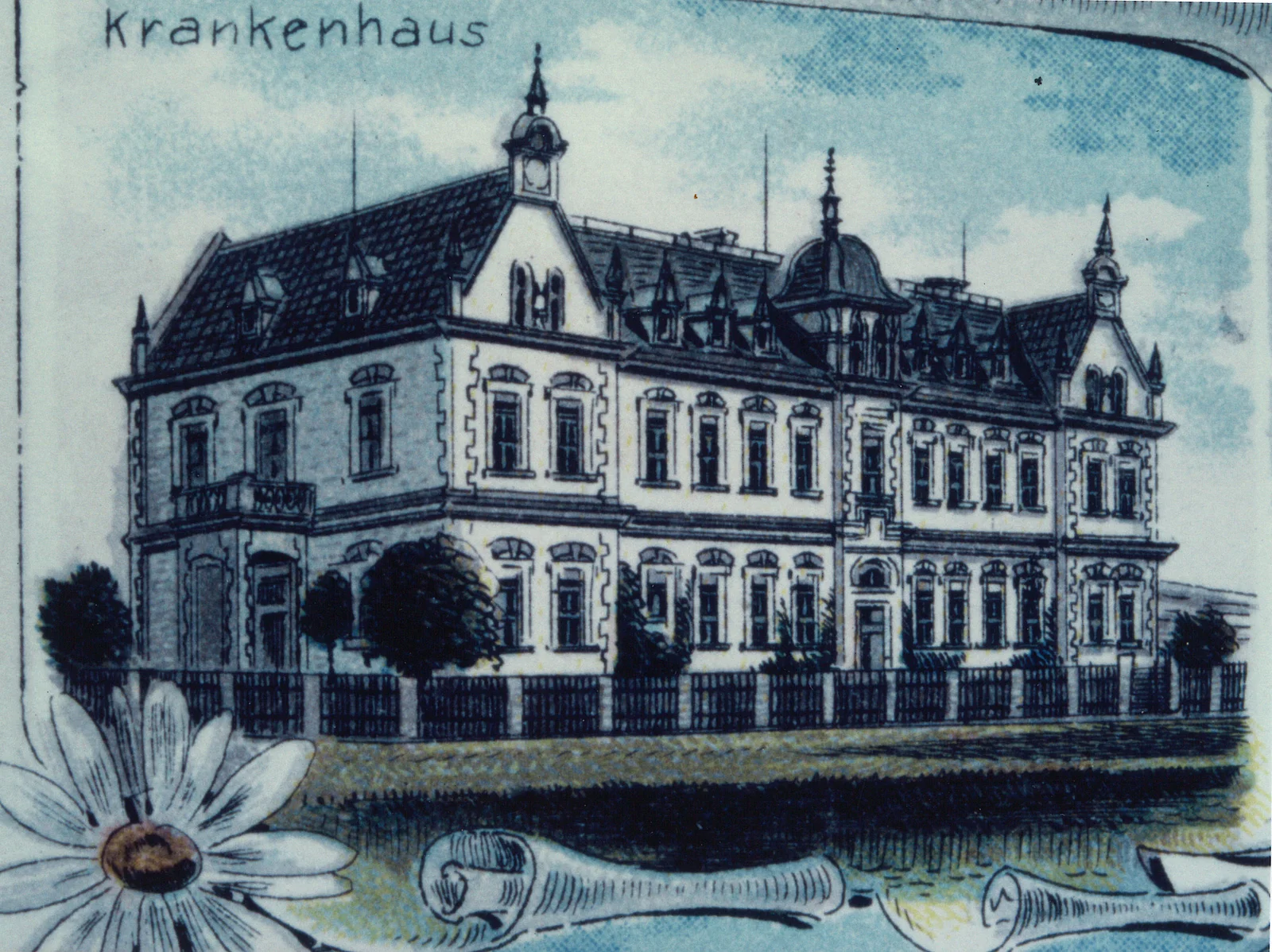 Ehem. Krankenhaus, Dreiflügelanlage in Neurenaissanceformen, Putzbau mit Zier- und Gliederungselementen in Naturstein, Mittelrisalit mit Zwerchhaus, Seitenflügel mit Giebel und Ziertürmchen, 1891/1892.