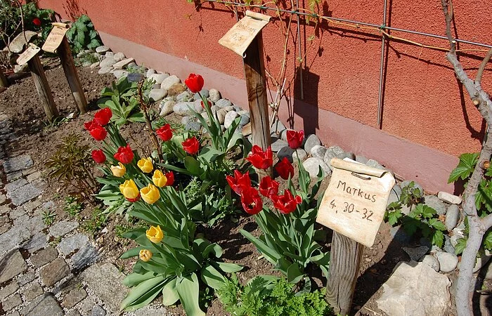 Schöne Pflanzen wachsen im sogennanten Bibelgarten.