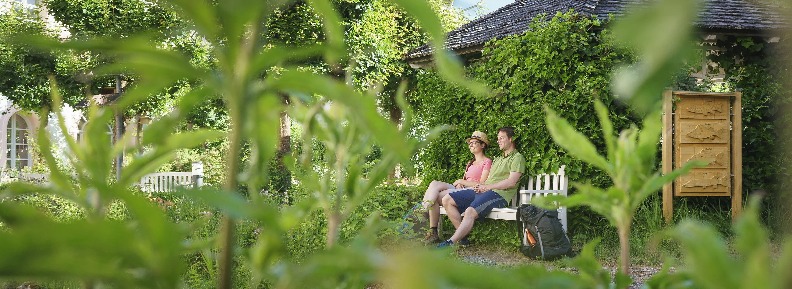 Ein Naturgarten mit charakteristischen Biotopen des Naturparks.