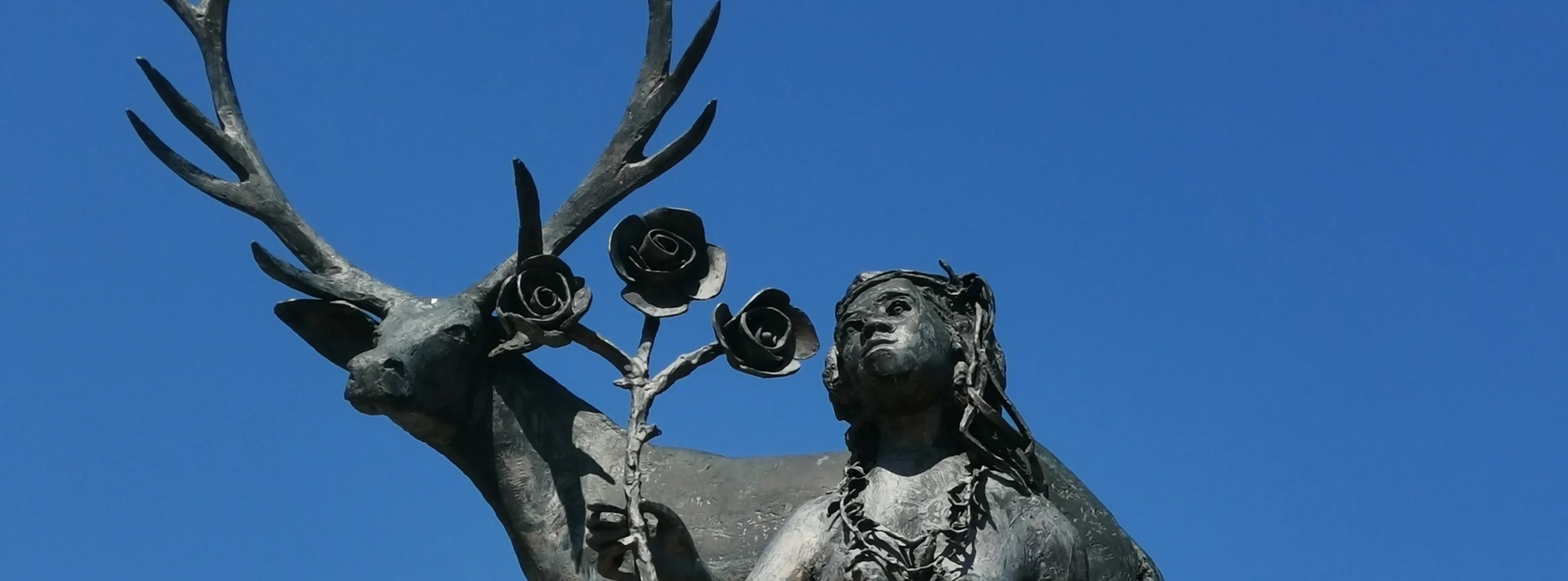 Bei der Skulptur handelt es sich um die künstlerische und plastische Umsetzung des Klosterwappens der Benediktinerabtei Kloster Plankstetten vom Künstler Alfred Böschl. Der Hirsch als Hinweis auf das Gründergeschlecht des Klosters Plankstetten, die Grafen und Hirschberg und das Mohrenfräulein Blanca, von der sich wohl der Ortsname "Blancstetten" ableitet. Der Schnitt im Stein soll den Kanal versinnbildlichen, der das Klosterdorf Plankstetten in zwei Teile geteilt hat.
