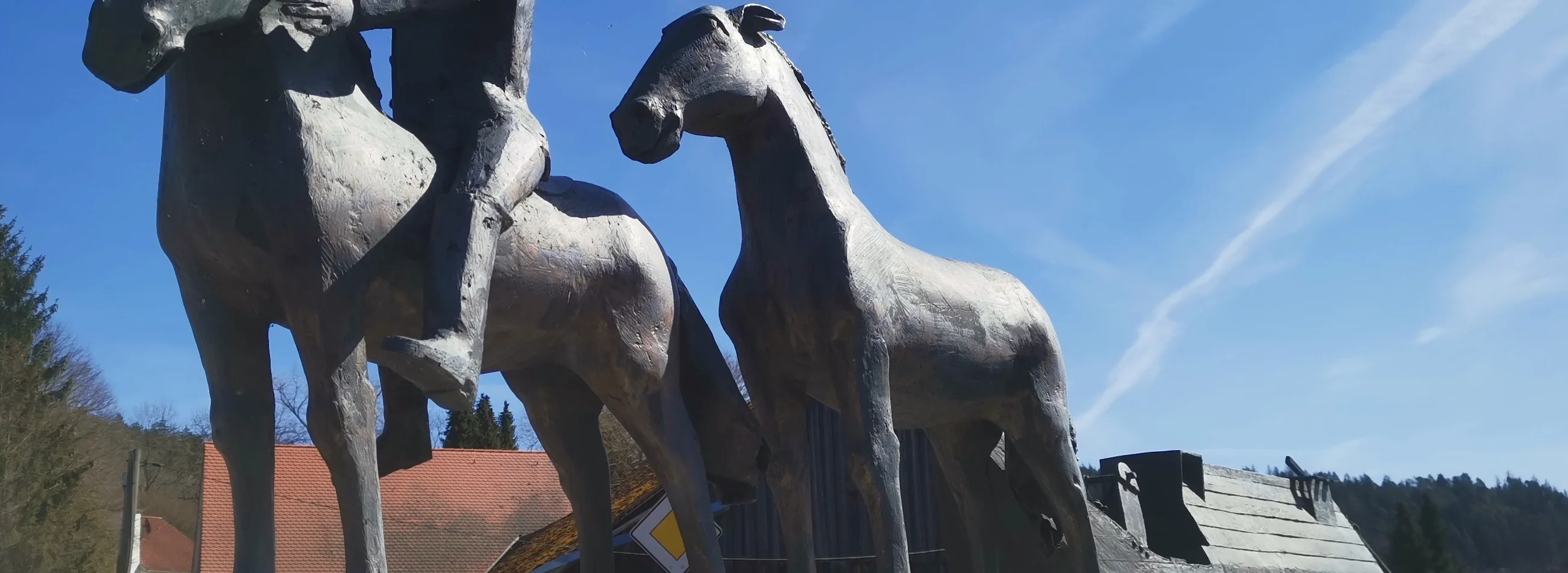 Bei der Skulptur ist ein Treidelkahn mit Pferd zu sehen. Treidler wurden früher – also, bevor es die Dampfkraft gab – benötigt, um Lasten stromaufwärts durch Flüsse oder Kanäle zu ziehen. So auch auf dem alten Ludwig-Donau-Main-Kanal, der sich gleich neben der Bundesstraße gegenüber von Plankstetten befindet.