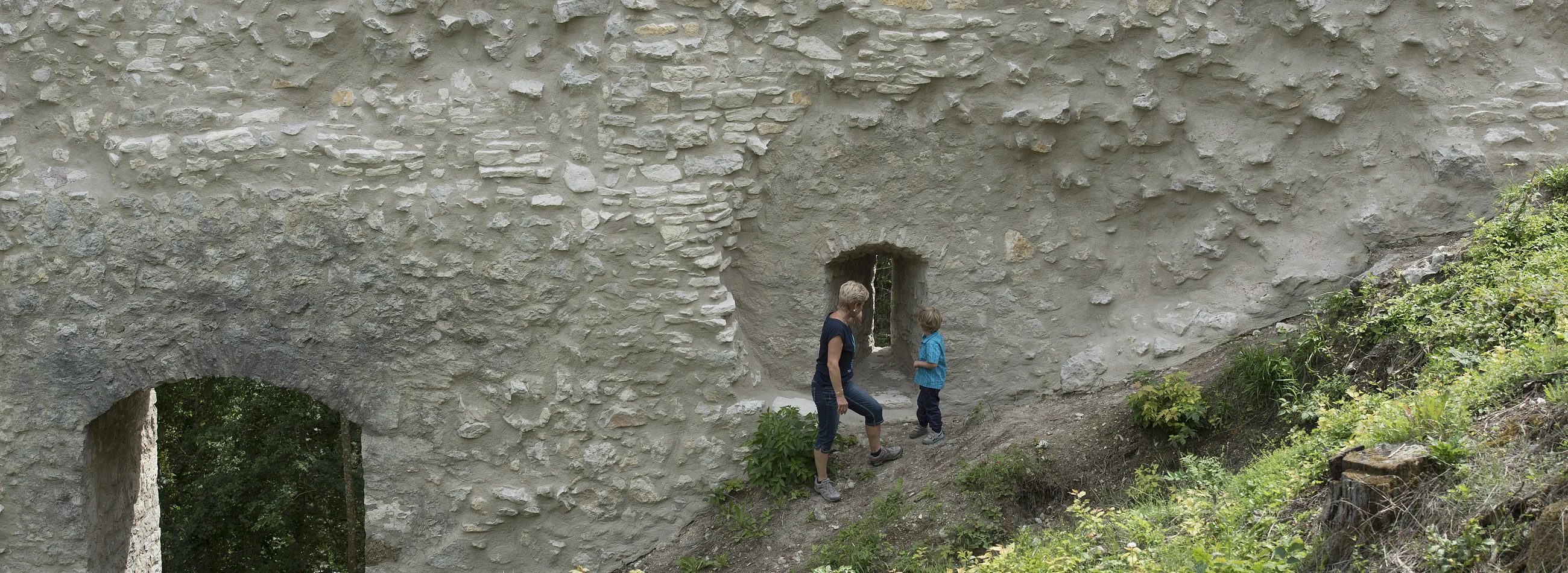 Die Anlage mit ungefähr trapezförmigem Grundriss wird durch einen breiten Halsgraben vom Hinterland getrennt. Der Bering ist an der West- und Südseite noch 7 bis 8 Meter hoch und im Westen schildmauerartig verstärkt. In der Burg befindet sich ein verschüttetes Kellergewölbe. Der unterhalb der Ruine liegende Bauernhof gehört zum Bereich der ehemaligen Vorburg.
