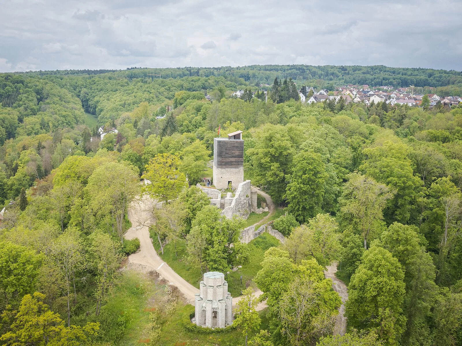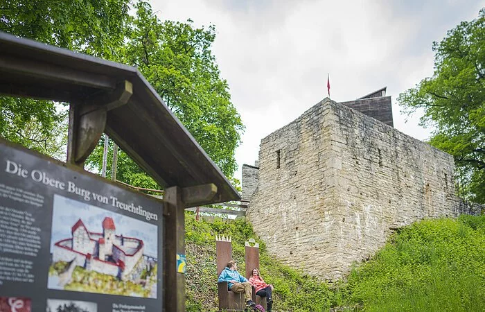 In der ersten Hälfte des 12. Jahrhunderts entstand auf einem Bergsporn westlich des Dorfes Treuchtlingen eine Höhenburg mit steinernem Wohnturm und mehreren Vorhöfen. Gründer der Anlage war wohl der Ortsadel, der seit dem 10./11. Jahrhundert ein festes Steinhaus an der Altmühl bewohnte. Doch erst 1340 gelang es den Treuchtlinger Herren, die Obere Burg von allen fremden Rechten freizukaufen.