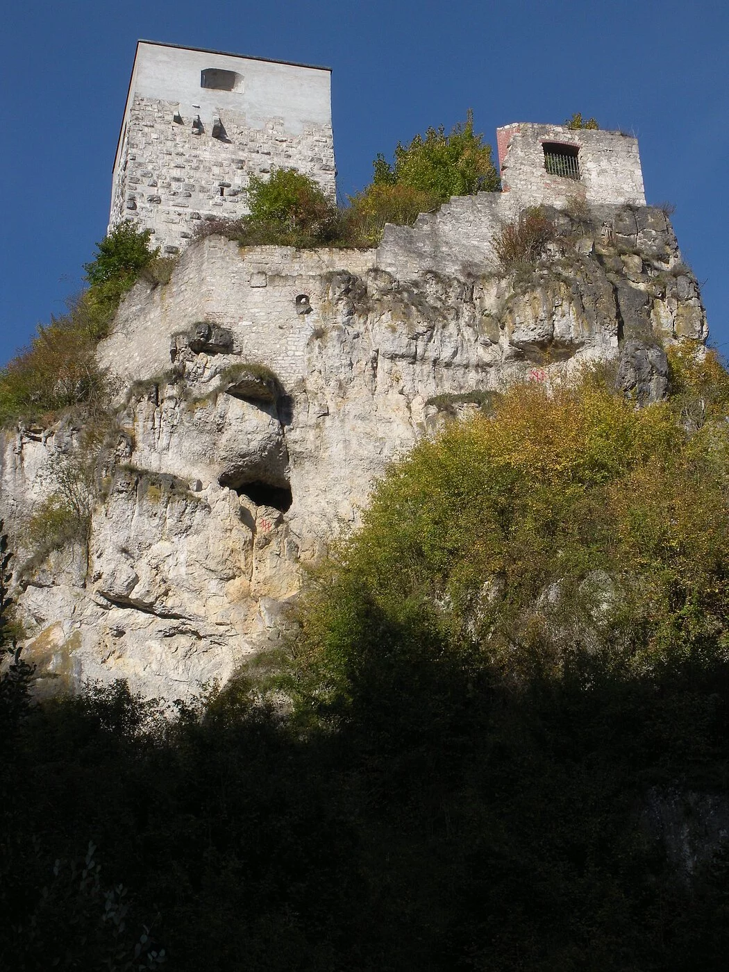 Die Anlage, deren unregelmäßiger Bering der Felskuppe angepasst ist, besteht aus dem etwa 35 m hohen Bergfried aus Buckelquadern und dem gegenüberliegenden Palas - beide zur romanischen Oberburg gehörend -, einer unteren Burg und dem im 15. Jahrhundert davor angelegten Zwinger mit einem kleinen Rundturm an der Nordecke. Durch den Halsgraben führt nun die Straße.