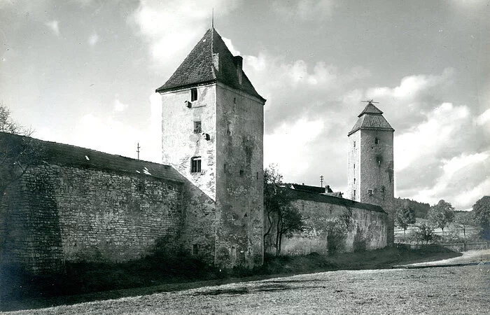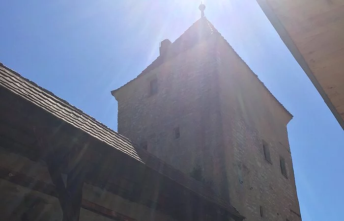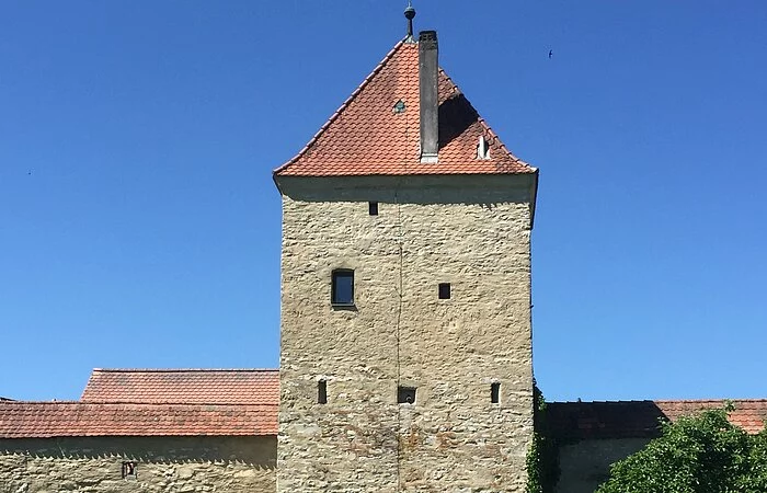 Dieser Turm ist der viertgrößte der Stadt und befindet sich innerhalb der begehbaren Wehrmauer zwischen Pulver- und Bettelvogtturm. Um 1811 erwarb ihn der Webermeister Johann Dexl, daher sein Name Dexlischer Turm, kurz Dachsenturm.