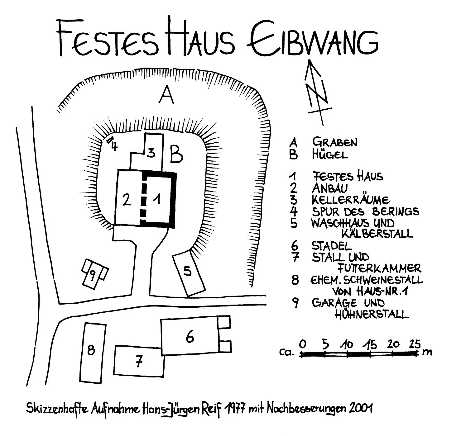 Die kleine Wasserburg war der Sitz der Marschälle von Eibwang, die 1351 erstmals erwähnt werden. Die Marschälle von Eibwang stammen aus dem Geschlecht der seit 1275 genannten Schmoll von Eysölden. Marschallamt und Burg waren Lehen der Herrschaft Heideck. 1418 hören wir von einem Stephan Marschall von Eibwang, der als Lehensmann der Herren von Heideck auf der Burg saß. Weitere Angehörige des Geschlechts waren Werner Marschall von Eibwang, der 1444 Richter in Heideck war, und sein Bruder Wilhelm, Pfleger auf Burg Stauf. Die Marschälle nannten sich im 15. Jahrhundert auch nach der bischöflichen Burg Hirschberg, wo sie bis 1447 als Erbburgmannen einen der vier Burgsitze innehatten.