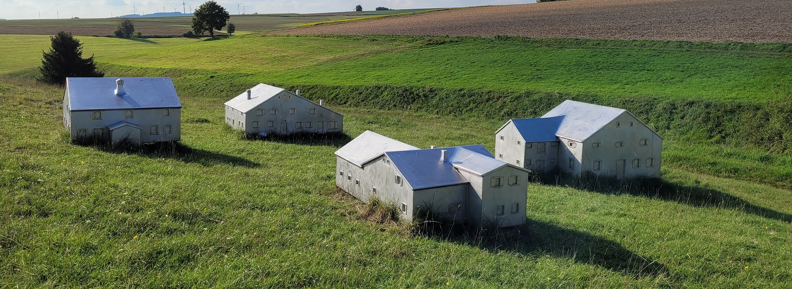 Ein außergewöhnliches Kunstwerk inmitten der kargen aber überaus reizvollen Juralandschaft, welches auf eine einzigartige, regional eigenständige Baukultur hinweist. Es liegt geographisch zentral zwischen den vier Ortsteilen Biburg, Gersdorf, Wengen und Nennslingen und besteht aus vier geschlossenen Häusern aus mattiertem Edelstahl im Maßstab 1:8. Das Kunstwerk umfasst Rekonstruktionen von abgebrochenen Jurahäusern aus allen vier Ortsteilen, die das Ortsbild teilweise über Jahrhunderte prägten. Jedes historische Vorbild war mit handbehauenen Bruchsteinen aus den nahegelegenen Steinbrüchen gebaut und hatte das für die Gegend charakteristische Legschieferdach.