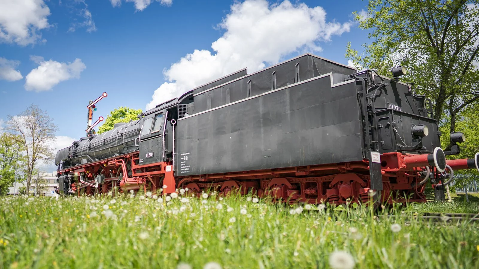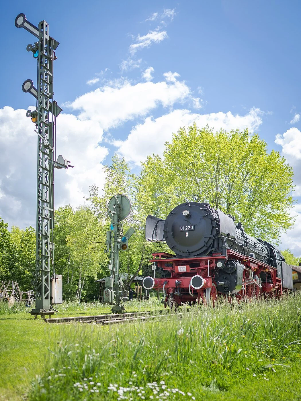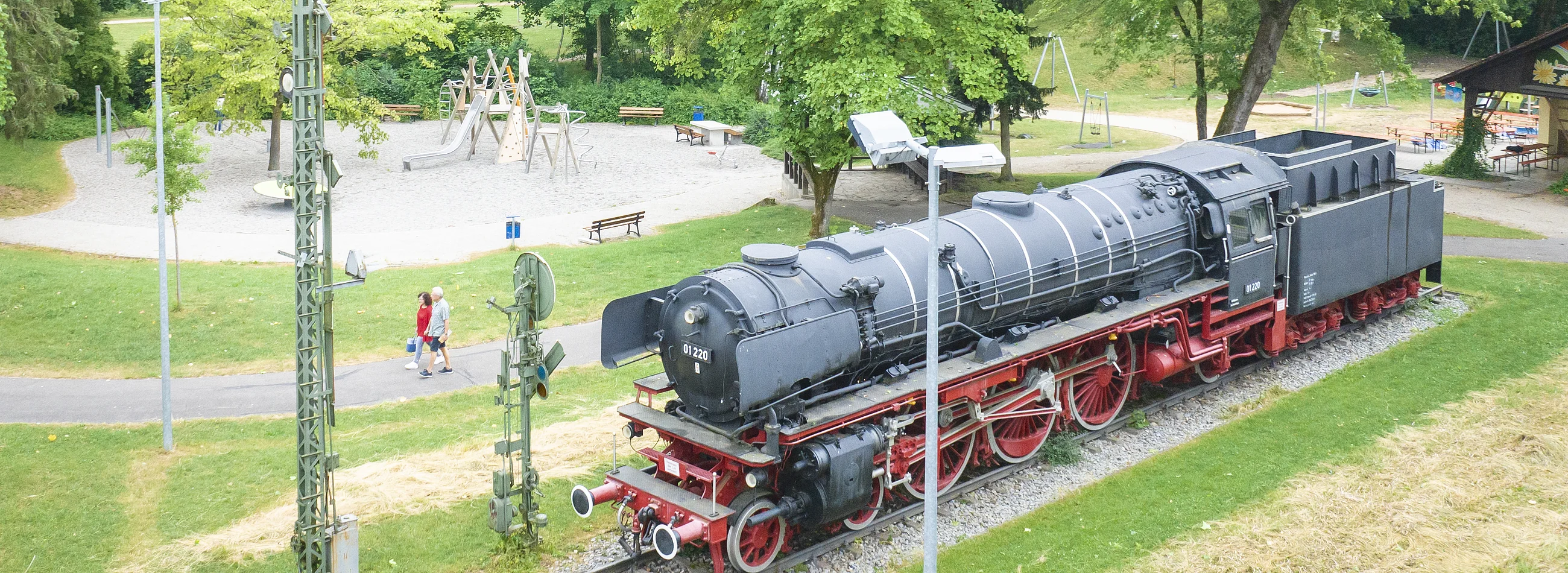 Dieser Lokomotivtyp der Baureihe 01 war im ehemaligen Bahnbetriebswerk Treuchtlingen stationiert und fuhr Schnellzüge auf der Strecke München - Frankfurt und weiter. Gebaut wurde die Lok 01 220 im Jahr 1937 von der Firma Henschel in Kassel. Sie hat ein Gesamtgewicht von 184 Tonnen bei einer Gesamtlänge von 24 Metern. Die zugelassene Höchstgeschwindigkeit betrug 130 Stundenkilometer.