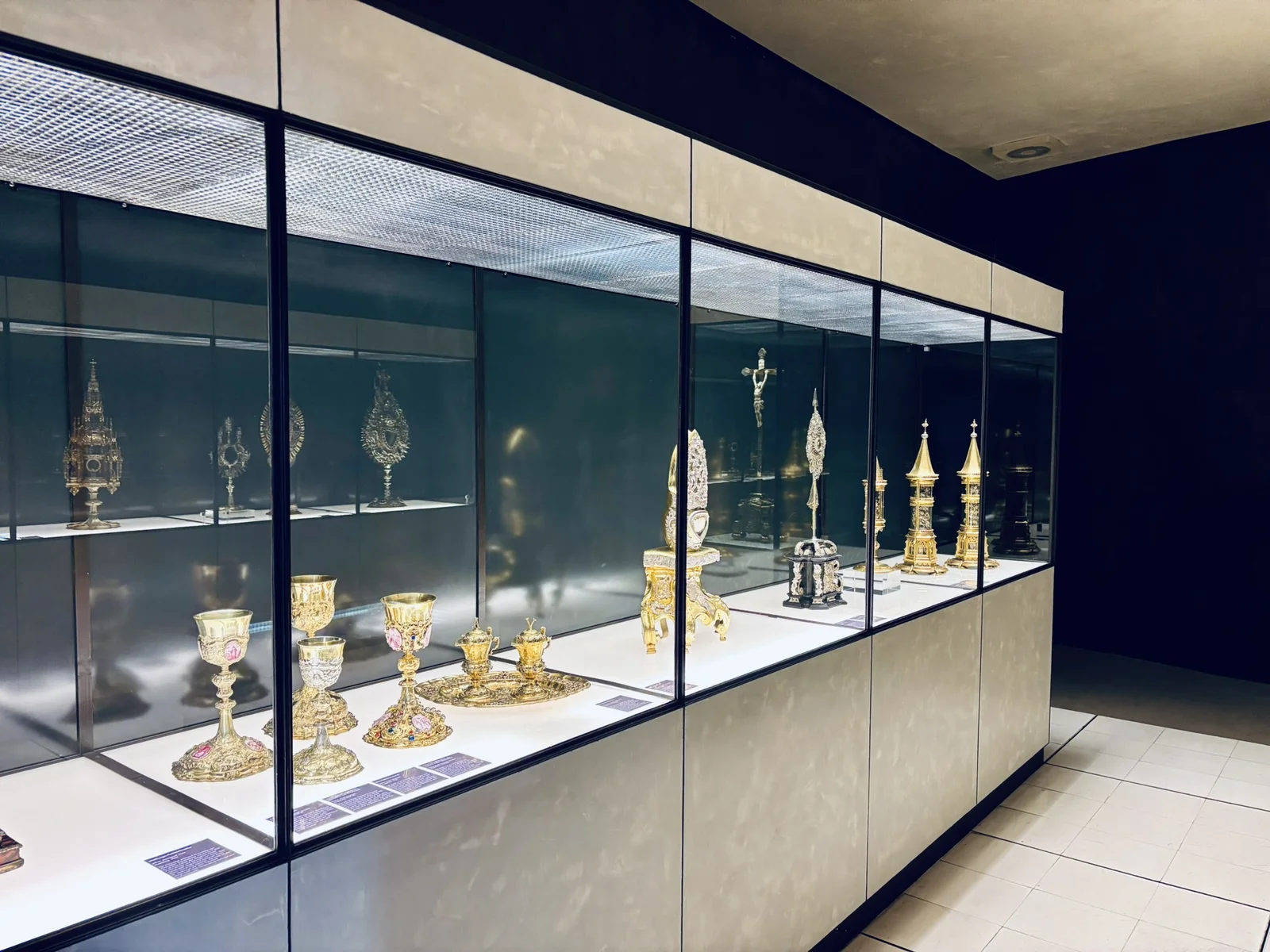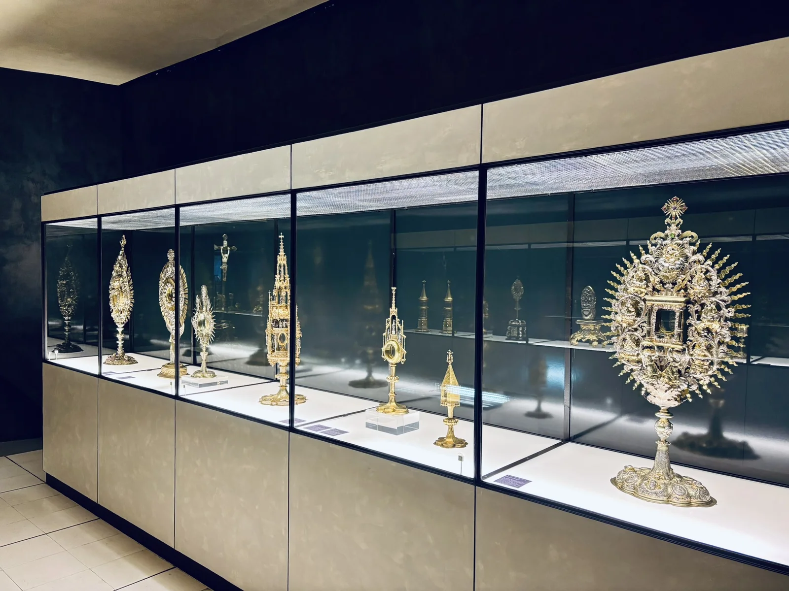 Die Exponate sind nach thematischen Gesichtspunkten geordnet. Raum I beschäftigt sich mit dem Aufbau und der Organisation des Bistums, seinen Bischöfen, Klöstern und Wallfahrtsorten. Als herausragende Exponate sind die sog. Gewänder des hl. Willibald zu nennen. In Raum II wird die vielschichtige Baugeschichte des Domes demonstriert. Weitere Räume beschäftigen sich mit Heiligenverehrung, Passion Christi und Märtyrern. Eine eigene Abteilung ist der Marienverehrung gewidmet. In Raum XI sind prunkvolle Goldschmiedearbeiten, vor allem aus dem Dom, Reliquiare und Insignien ausgestellt. Im ausgemalten ehemaligen Kapitelsaal sind die bedeutenden spätmittelalterlichen Tapisserien zur Legende der hl. Walburga zu sehen.