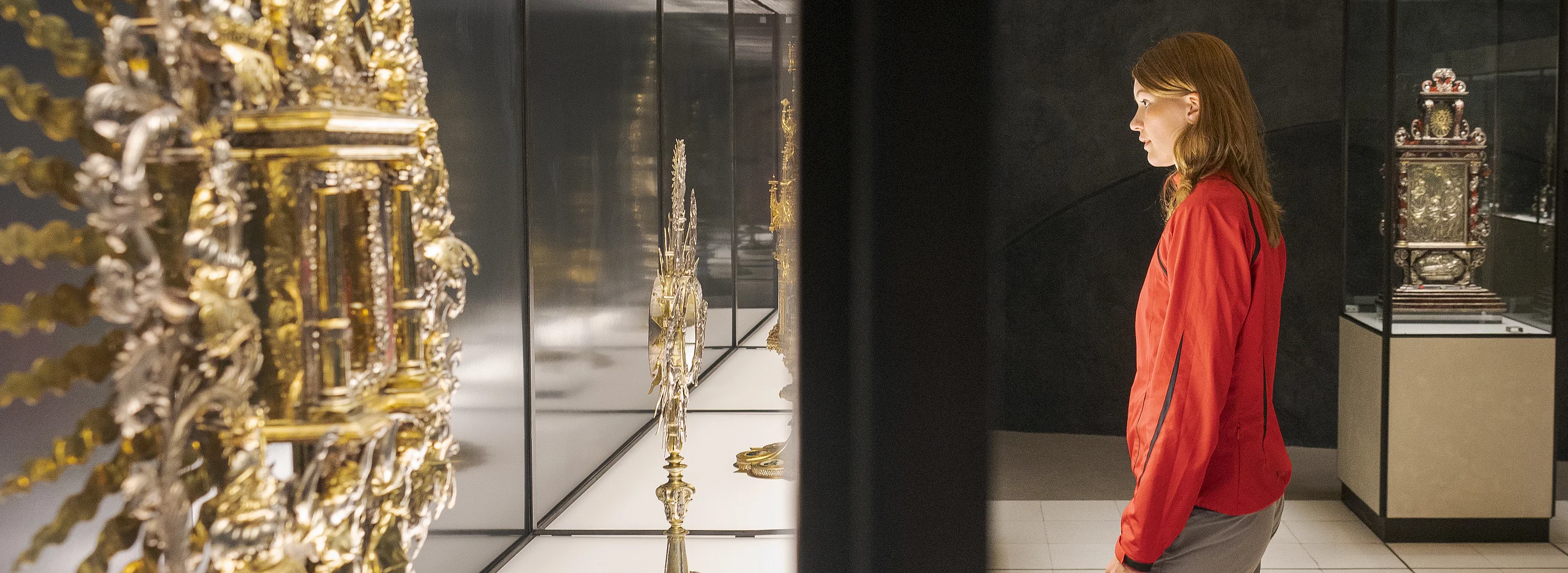 Die Exponate sind nach thematischen Gesichtspunkten geordnet. Raum I beschäftigt sich mit dem Aufbau und der Organisation des Bistums, seinen Bischöfen, Klöstern und Wallfahrtsorten. Als herausragende Exponate sind die sog. Gewänder des hl. Willibald zu nennen. In Raum II wird die vielschichtige Baugeschichte des Domes demonstriert. Weitere Räume beschäftigen sich mit Heiligenverehrung, Passion Christi und Märtyrern. Eine eigene Abteilung ist der Marienverehrung gewidmet. In Raum XI sind prunkvolle Goldschmiedearbeiten, vor allem aus dem Dom, Reliquiare und Insignien ausgestellt. Im ausgemalten ehemaligen Kapitelsaal sind die bedeutenden spätmittelalterlichen Tapisserien zur Legende der hl. Walburga zu sehen.