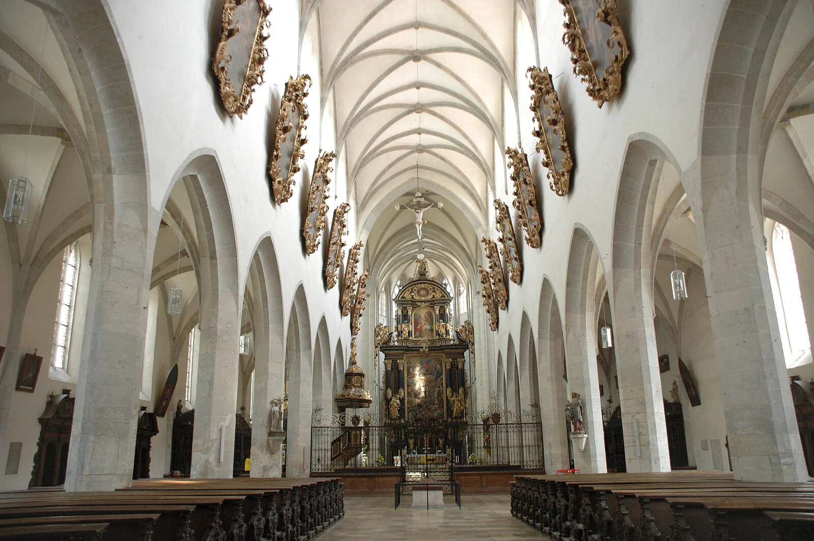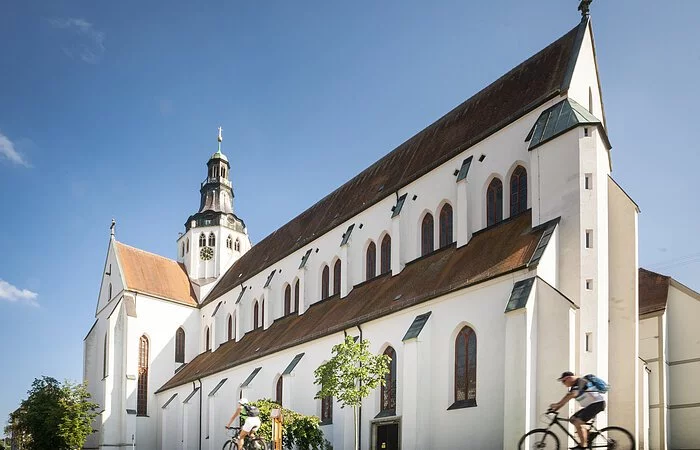 Die ehem. Klosterkirche, eine mächtige, kreuzförmig angelegte, dreischiffige Basilika stellt architektonisch den „Inbegriff der Gotik in Bayerisch-Schwaben“ dar. Die Ausstattung wird jedoch heute im Wesentlichen vom Barock beherrscht.