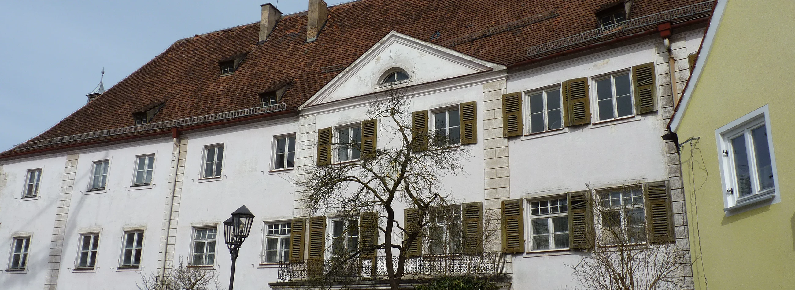 Im Jahre 1523 verlegte Pfalzgraf Ottheinrich von Pfalz-Neuburg mit "Bewilligung des Kaisers" das Landgericht von Graisbach nach Monheim. Zum Oberamtsverwalter und Landrichter avanciert, ließ der Fürst sein bescheidenes Haus im Nordosten der Monheimer Innenstadt zu einem repräsentativen Schloss umbauen, das von 1879 bis 1957 als Amtsgericht diente.