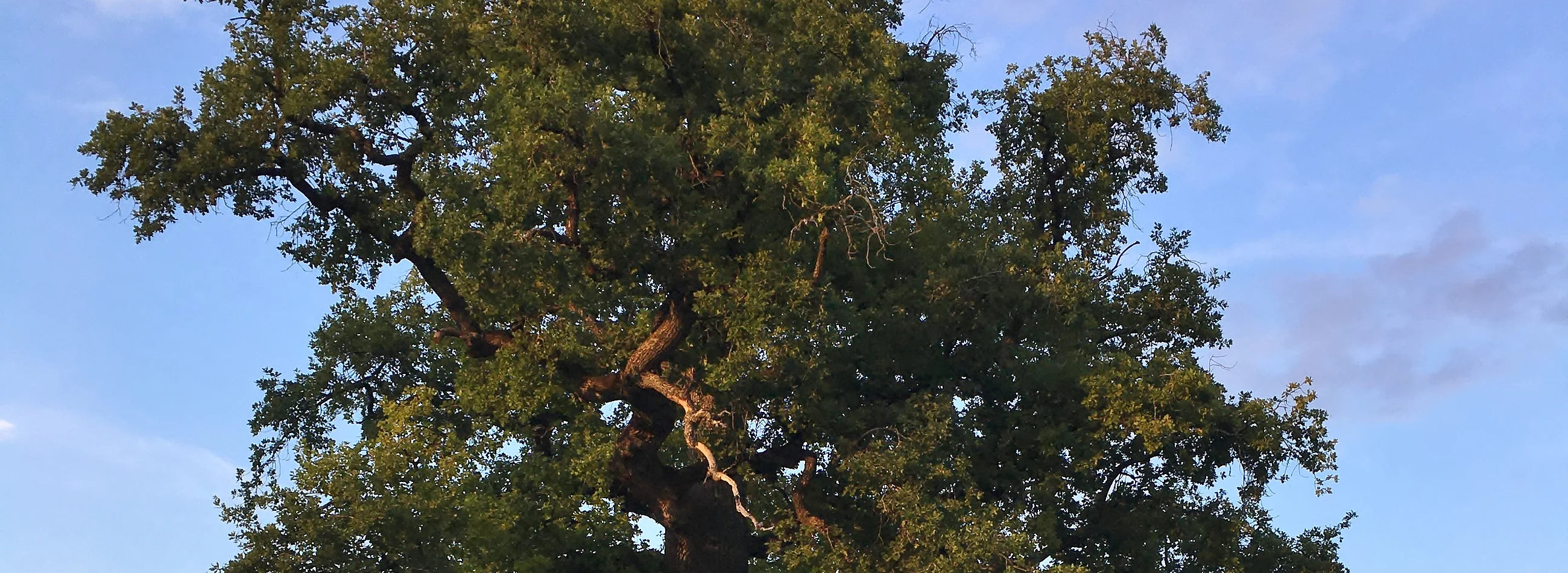 Diese 450 Jahre alte Eiche hat eine Höhe von etwa 20 m und einen Stammumfang von fast 6 m. Sie ist schon von weitem als knorriger Baum mit einer breit ausladenden Krone, die sehr tief ansetzt, zu erkennen. Möglicherweise ist diese Eiche der Rest eines größeren Bestandes, der sich am Waldrand entlang zog.Bei Eichen handelt es sich überwiegend um sommergrüne Bäume, die an ihrer Frucht, der Eichel, zu erkennen sind. Sie beherbergen eine ungewöhnliche Vielfalt von Insekten. Man spricht von 1000 Arten in einer Krone.In früherer Zeit wurden insbesondere für die Schweinemast gerne Eichen gepflanzt. Gerade im Herbst, wenn andere Futtermittel knapper wurden, waren die Eicheln eine willkommene Bereicherung der Futterration.