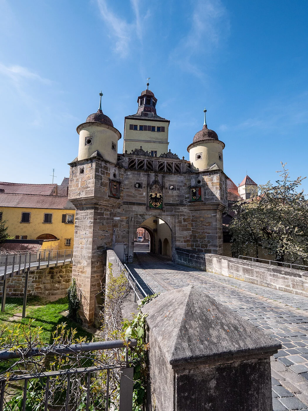 Das im Norden der Weißenburger Altstadt gelegene Stadttor war ursprünglich ein Teil der um 1200 entstandenen Stadtmauer. Im 14. Jahrhundert wurde der Torturm gebaut, sein Obergeschoss im 17. Jahrhundert. Um 1520 waren das Vorwerk und der Wehrgang fertiggestellt. Das Maßwerk der Brüstung steht zeitlich am Beginn der Renaissance.