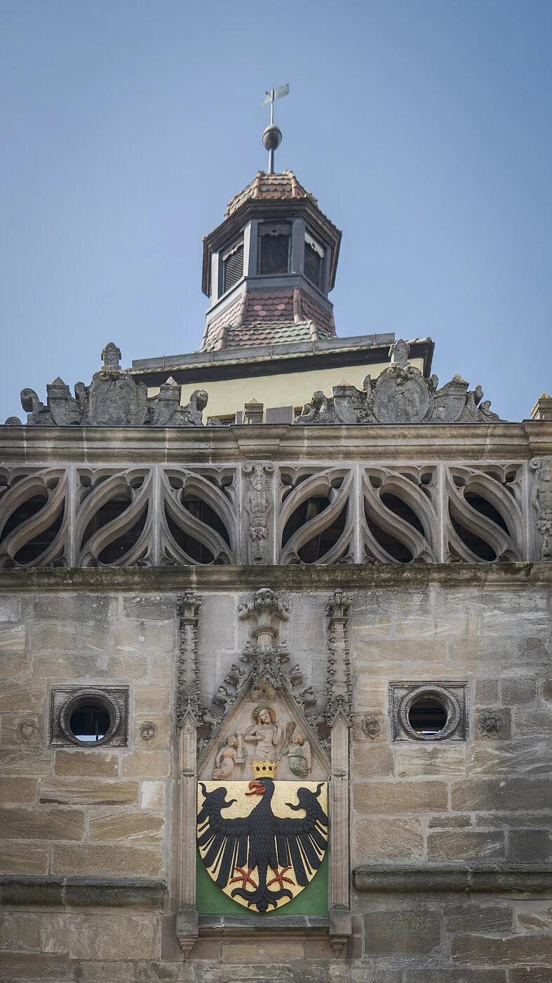 Am Ellinger Tor lässt sich ein Stück Stadtgeschichte ablesen: auf der rechten Hälfte befindet sich das erste Stadtwappen (1241), links gegenüber das zweite Wappen Weißenburgs aus dem Jahr 1481. Das Wappen von 1241 bezieht sich sowohl auf die Stadt (halbe weiße Burg) als auch auf den König (halber Reichsadler), womit gleichzeitig auf die Reichsunmittelbarkeit Bezug genommen wird. In diesem Wappen fällt auf, dass zwischen den beiden kleinen weißen Türmchen ein Doppelkopfadler platziert wurde.